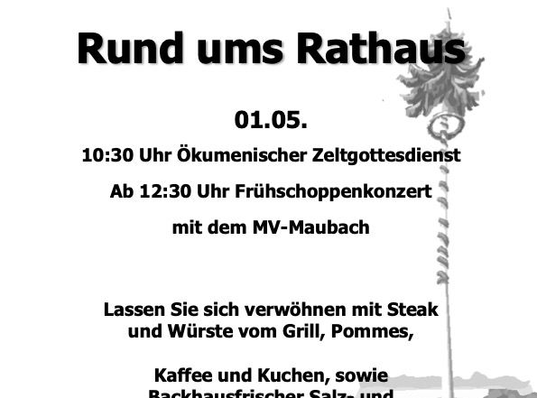 Am 1. Mai um 10.30 Uhr am Rathaus von Maubach - Zeltgottesdienst.