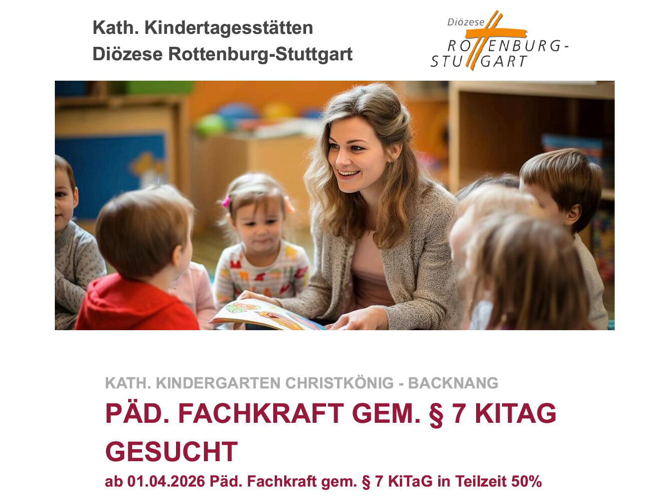 ab 01.04.2026 Päd. Fachkraft gem. § 7 KiTaG in Teilzeit 50%