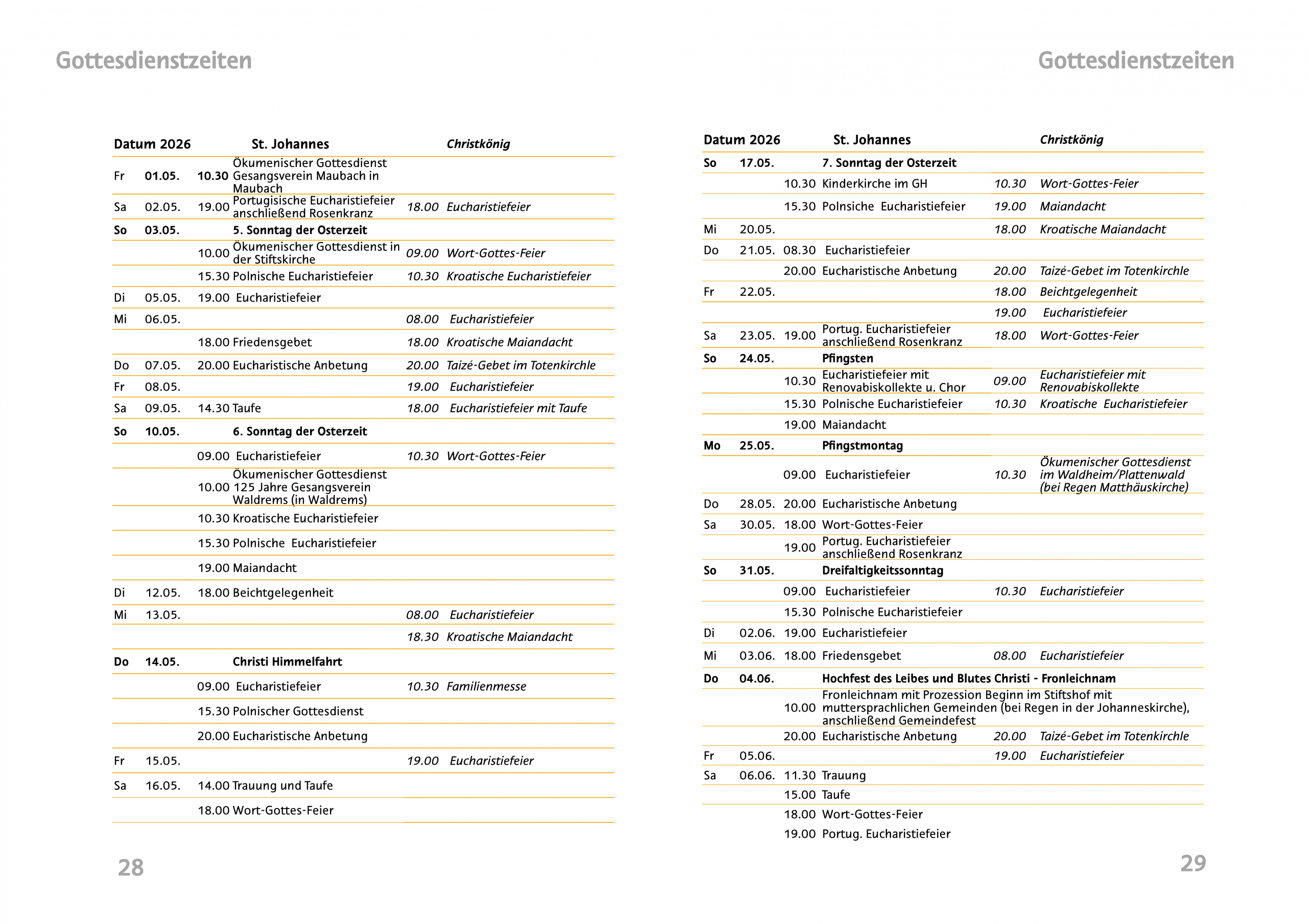 Gottesdienste an Werktagen (bitte […]