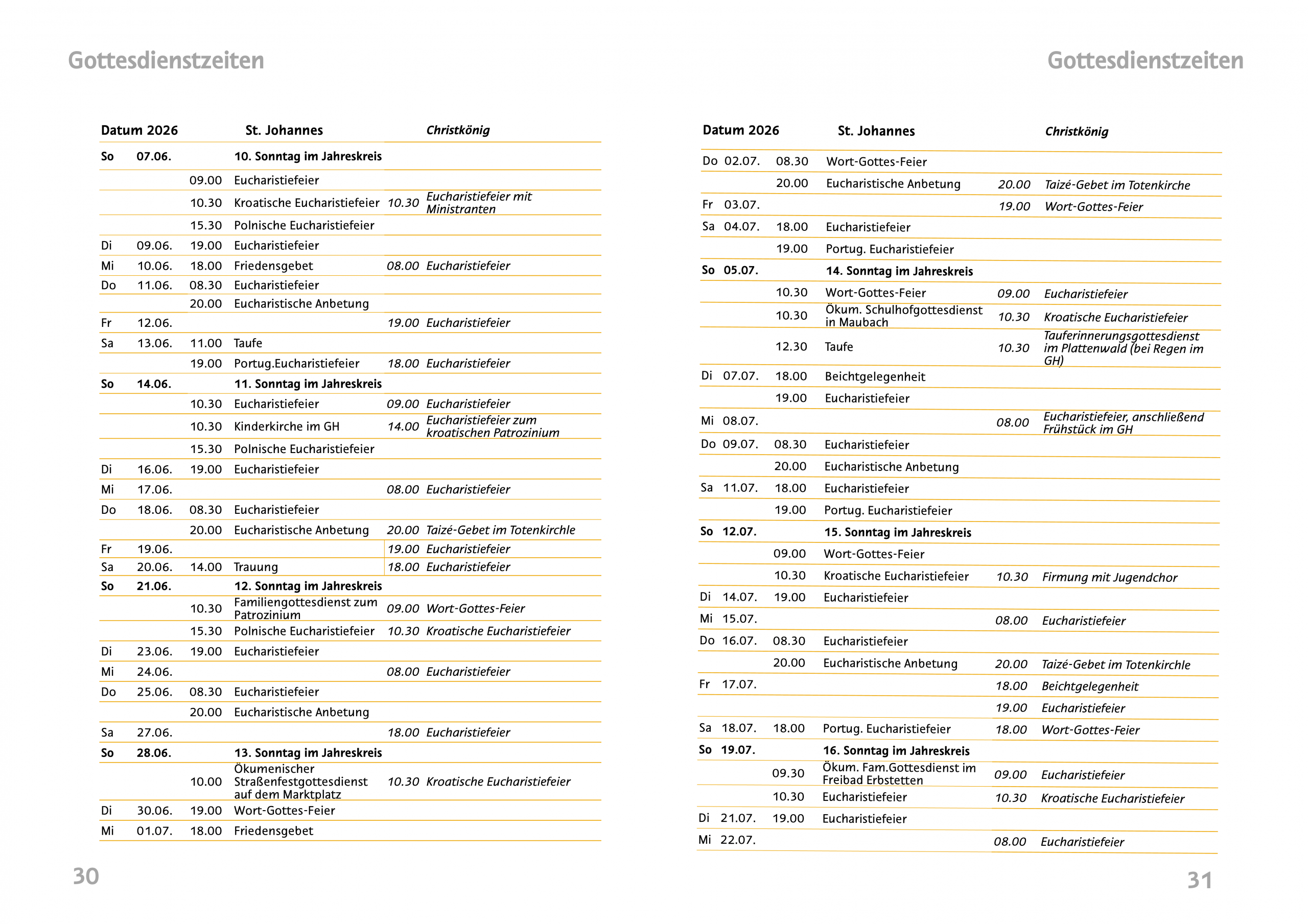 09.00 Uhr Wort-Gottes-Feier St. Johannes