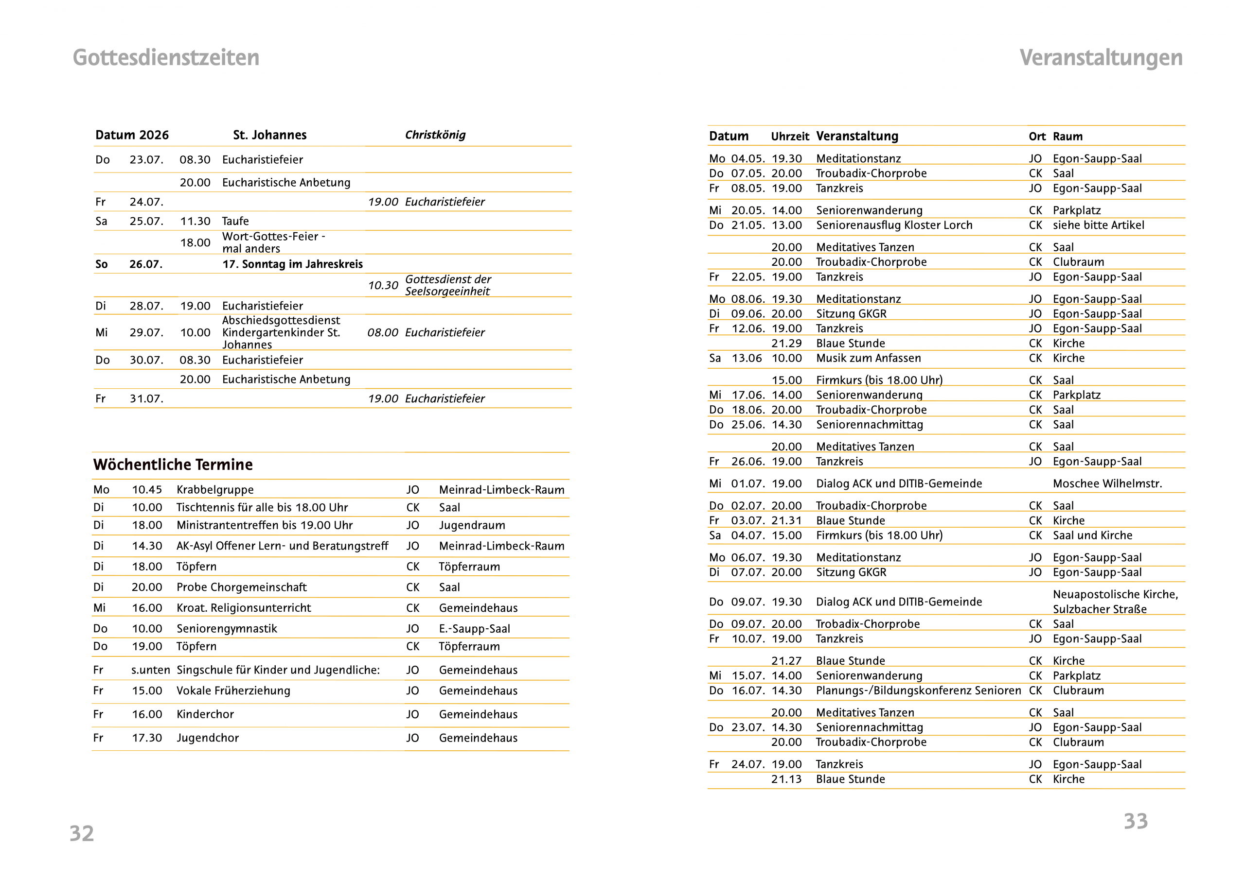 Gottesdienstzeiten April – Juli