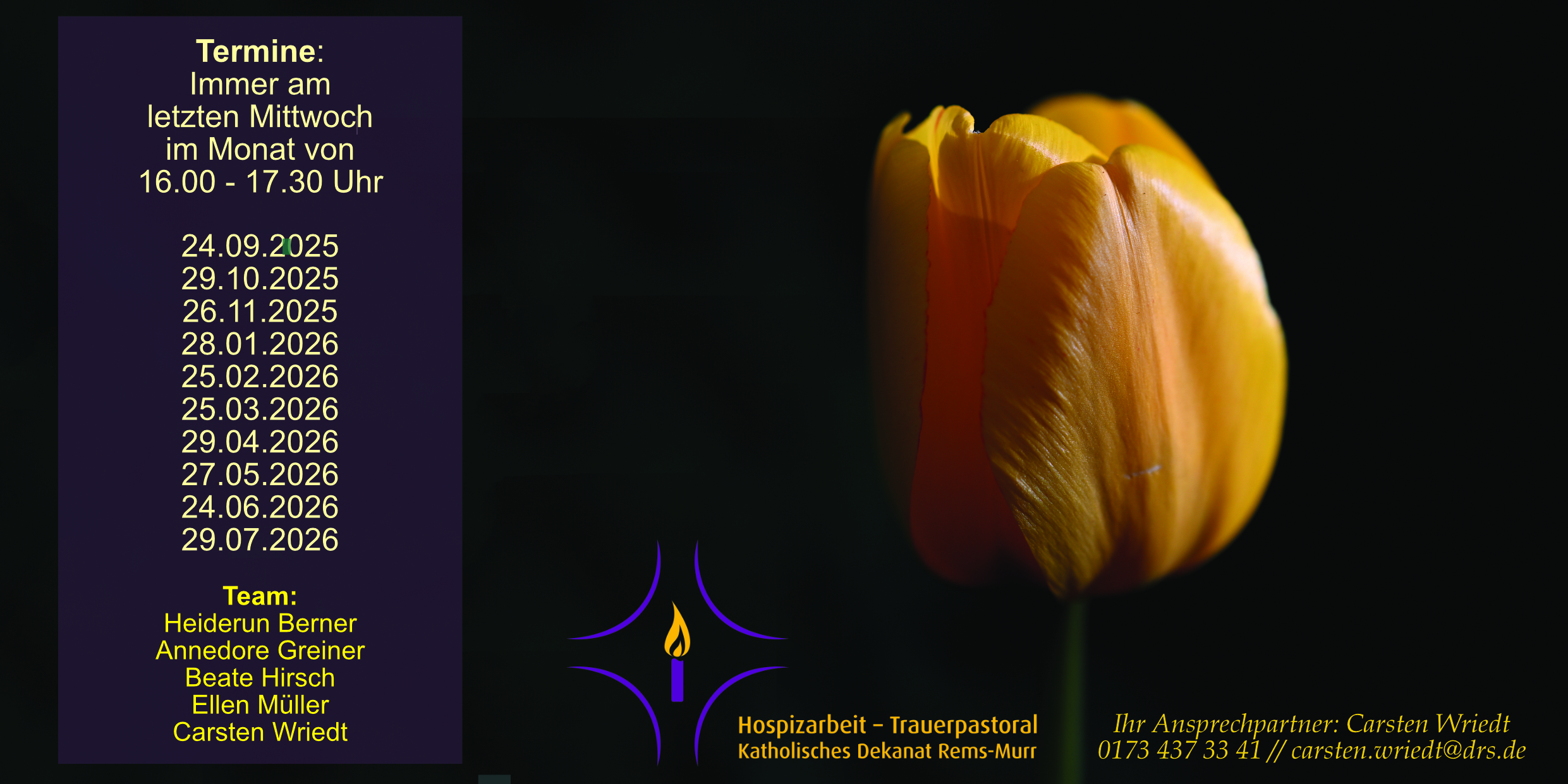 Christa Müller (Psychotherapeutin) und Carsten Wriedt (Profilstelle Trauerpastoral) möchten mit Ihnen in das Gespräch kommen und die Teilnehmenden ins Gespräch bringen: Der Austausch von Erfahrungen, das Verstandenwerden von anderen Trauernden, die Vertraulichkeit der Gruppe können wertvolle Unterstützung auf Ihrem Weg der Trauer werden.