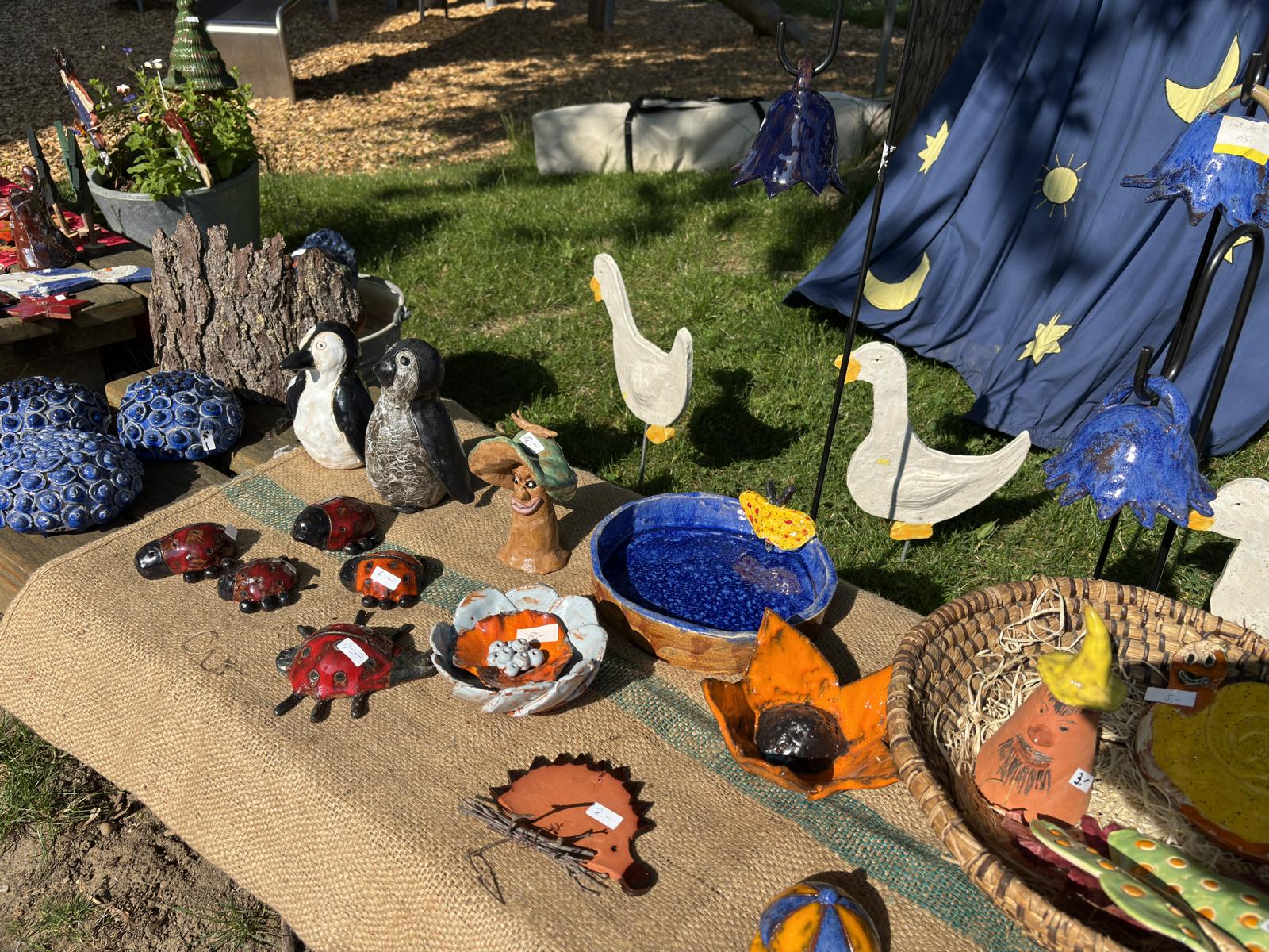 Im Garten des Gemeindehauses präsentierte der Töpferkreis seine Kunstwerke. Die Leitung dieser Gruppe geht nun von Frau Freitas auf Frau Heller über. Kontakt zur Töpfergruppe ist über das Pfarramt möglich.