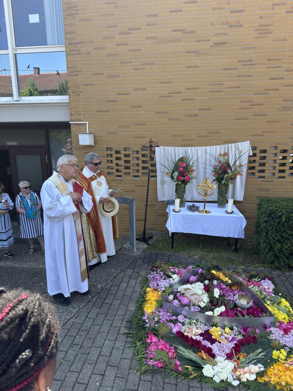 Fronleichnam 2025: Danke an die zahlreichen und hochmotivierten Helferinnen und Helfer, die Aufbau, Essen, Blumenteppiche und Festgestaltung vorbereitet haben.
