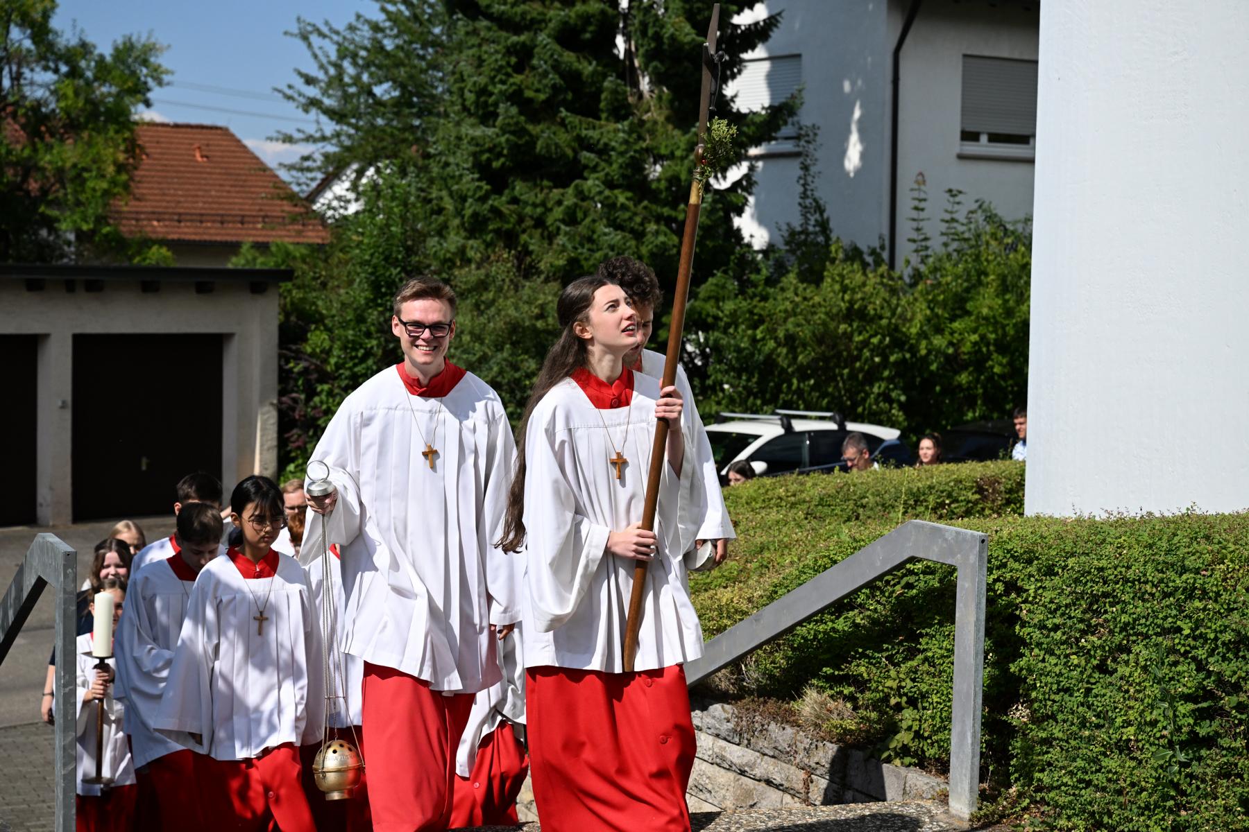 Im Anschluss an den Gottesdienst lud die katholische Gesamtkirchengemeinde die Gefirmten und ihre Familien zu einem Sektempfang in den Garten und den Gemeindesaal des Christkönigsgemeindezentrums ein.