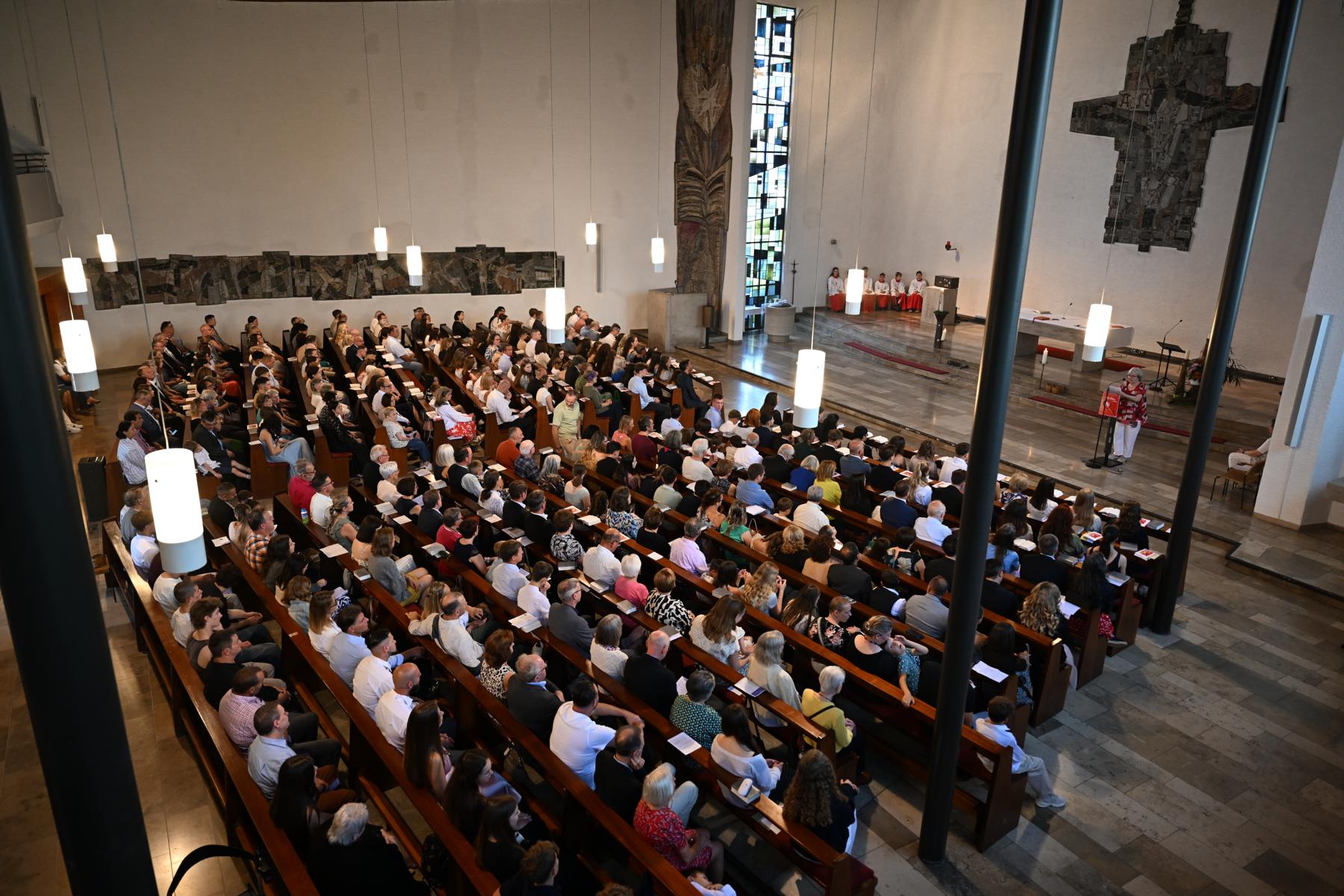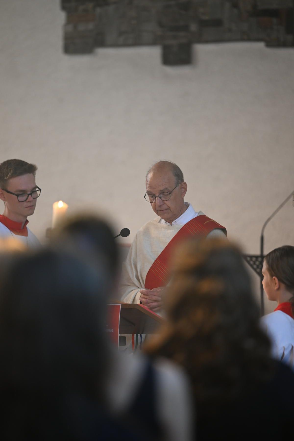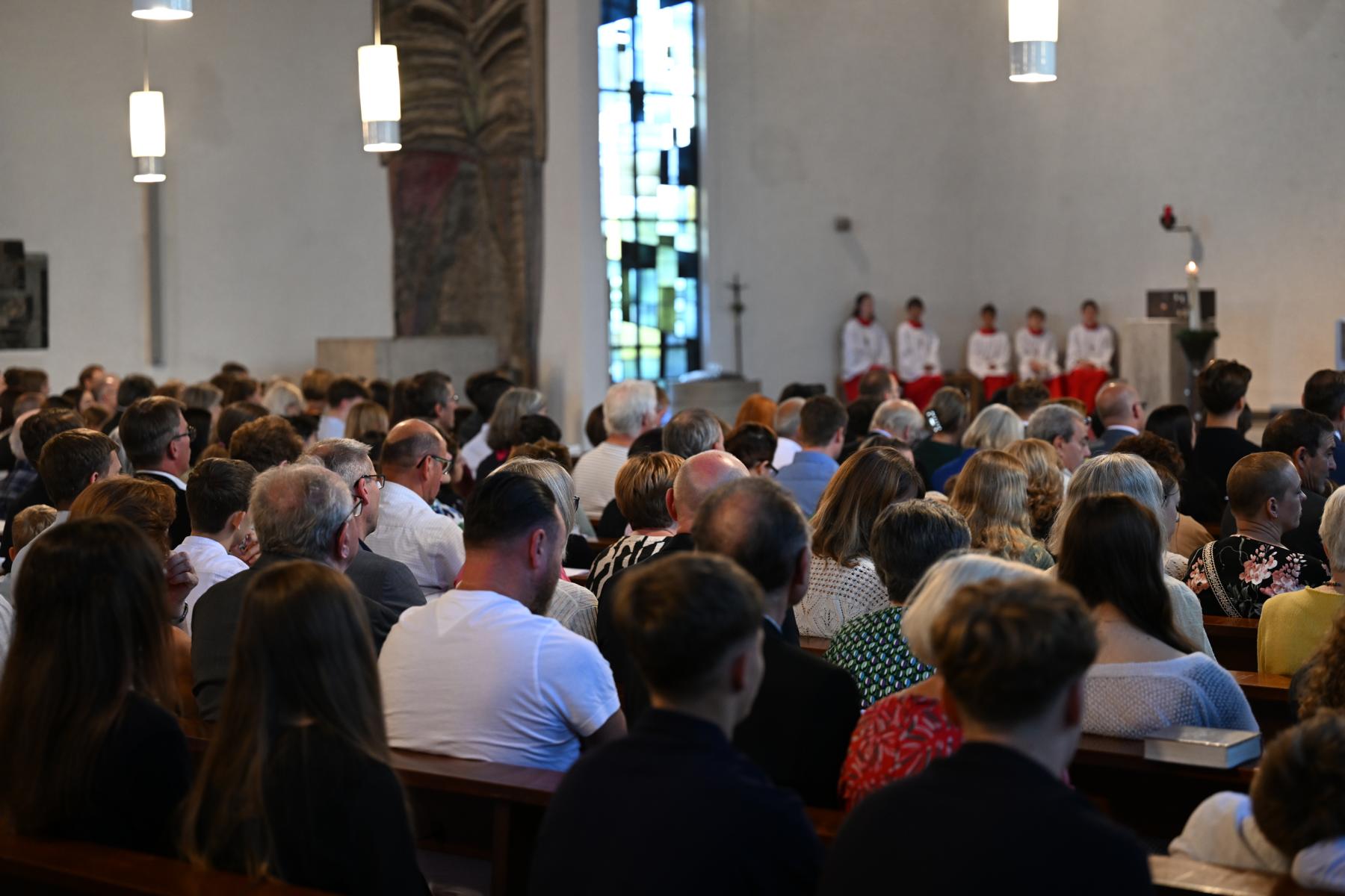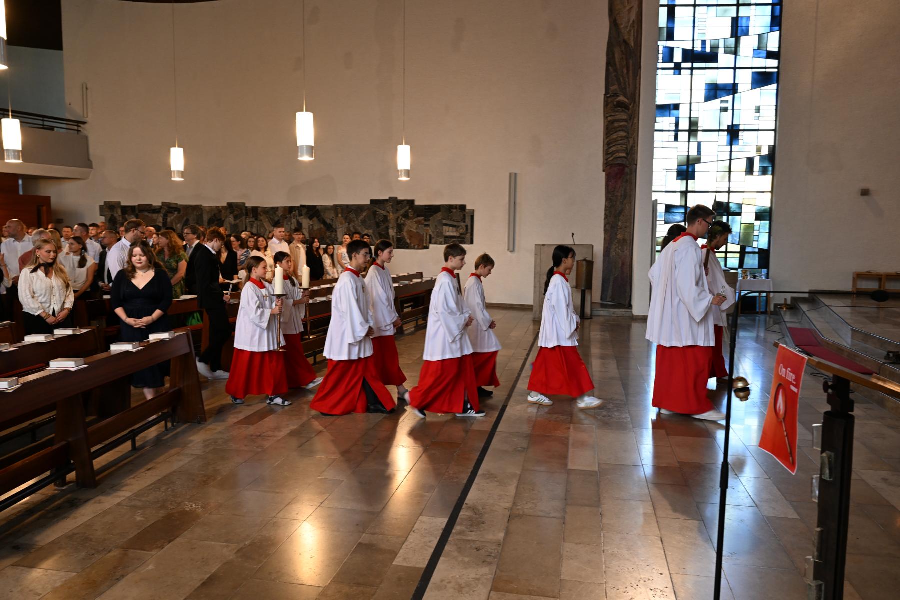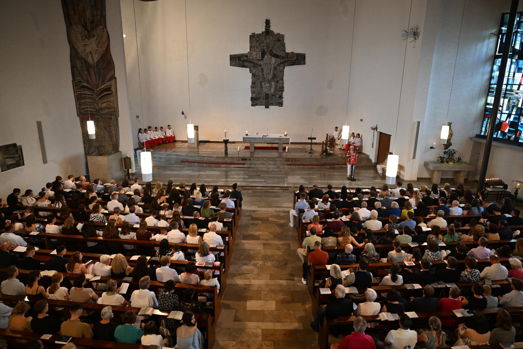 28 Jugendliche wurden in einem festlichen Gottesdienst am 16. Juli 2023 in der Christkönigskirche in Backnang von Pfarrer Wolfgang Beck gefirmt.