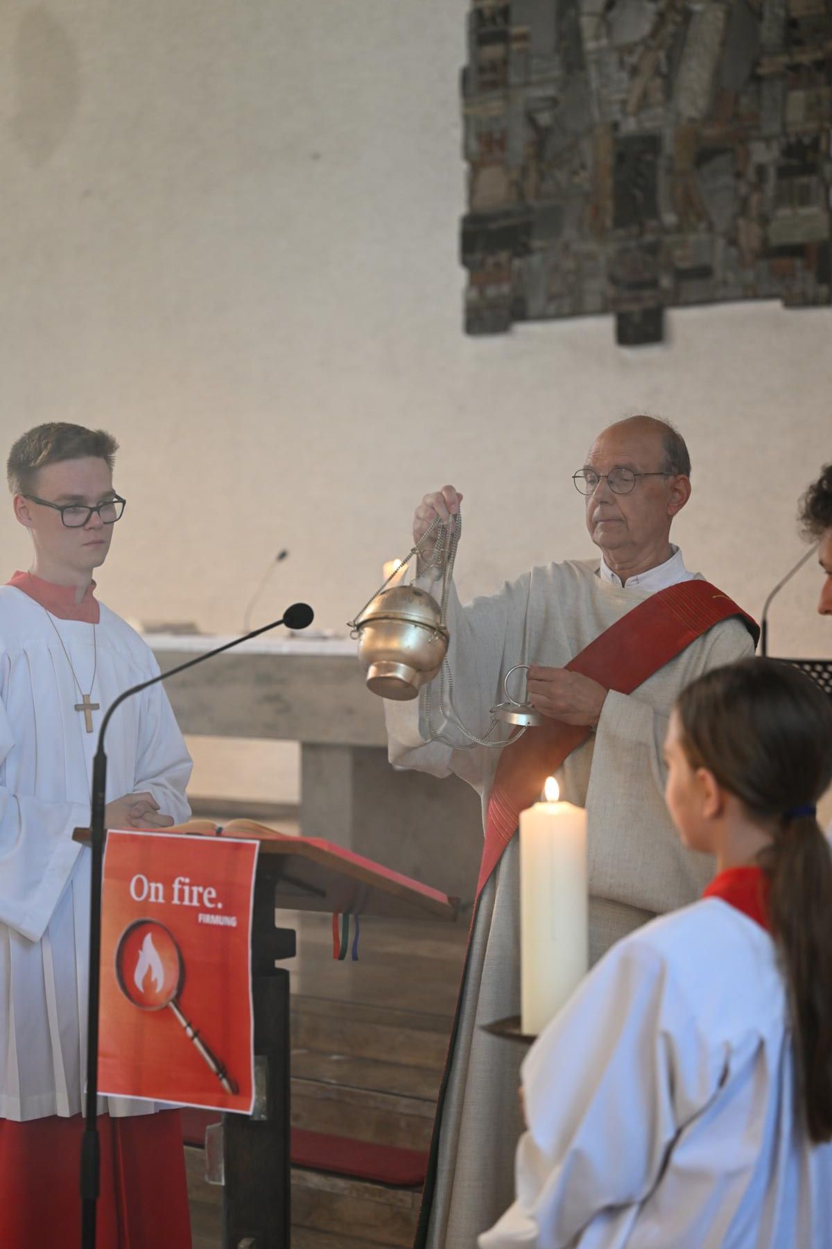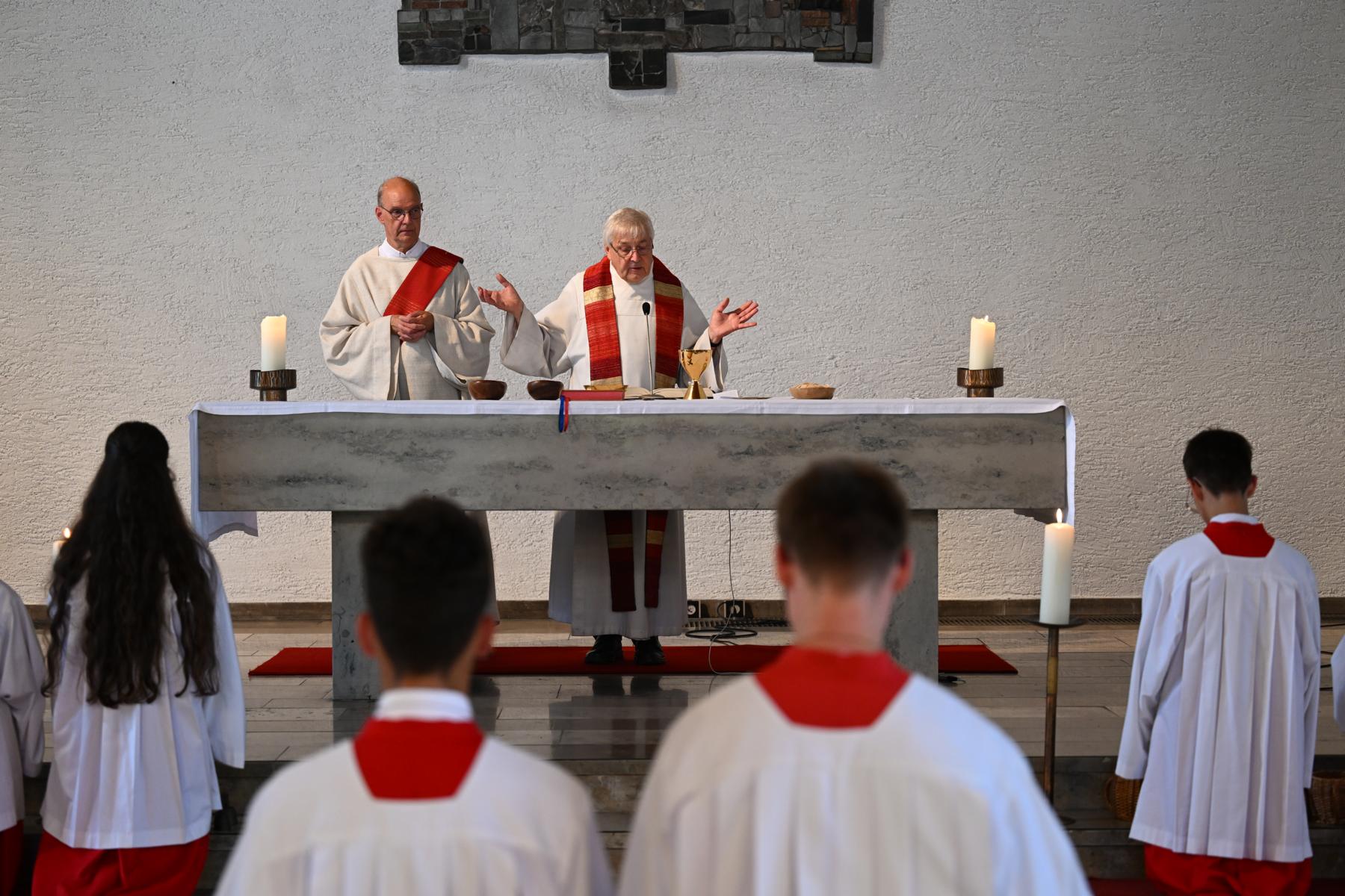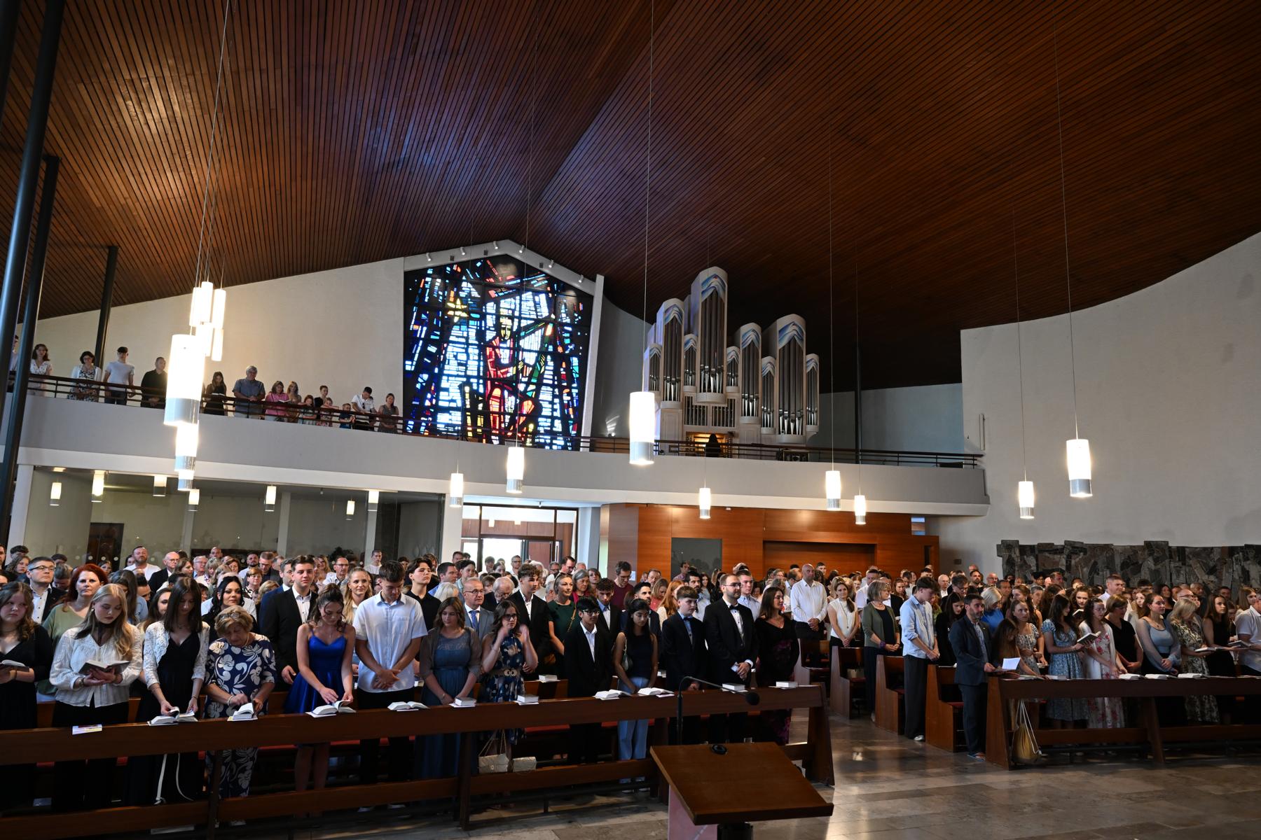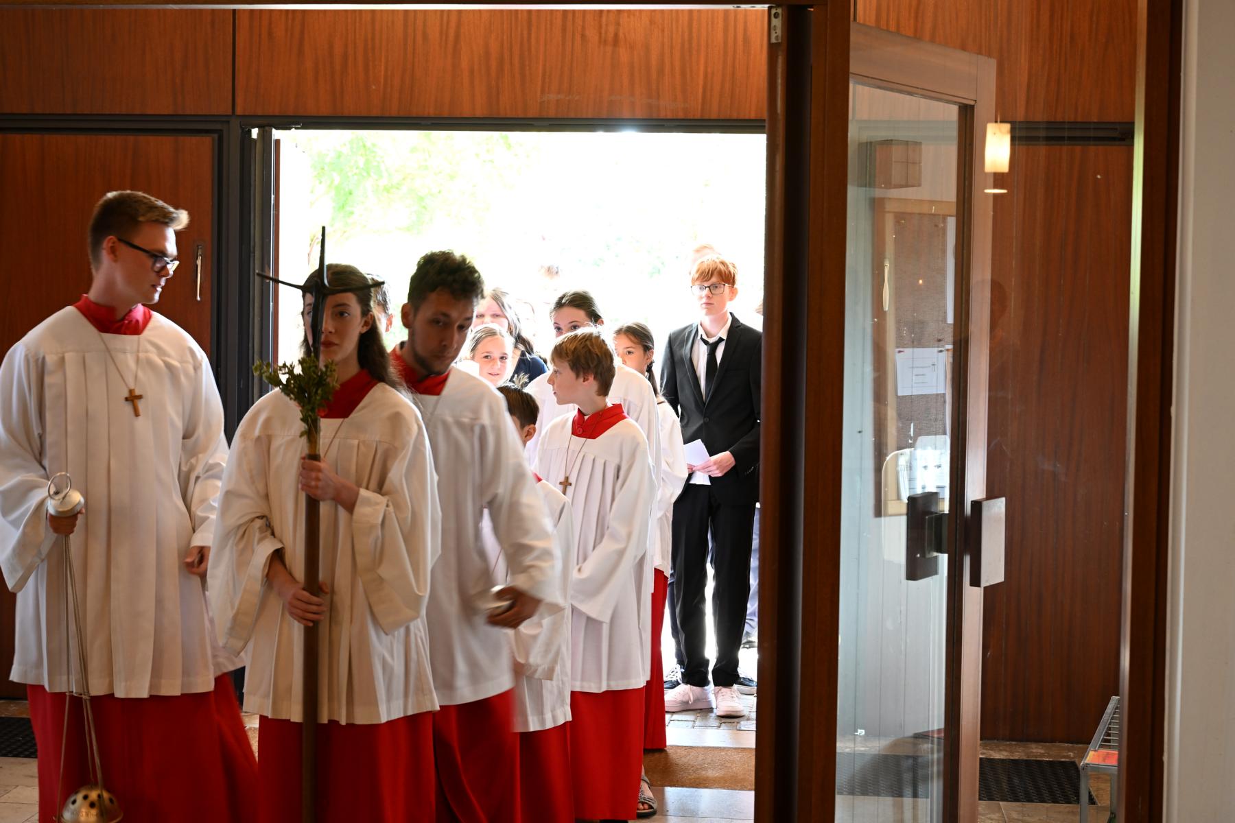 28 Jugendliche wurden in einem festlichen Gottesdienst am 16. Juli 2023 in der Christkönigskirche in Backnang von Pfarrer Wolfgang Beck gefirmt.