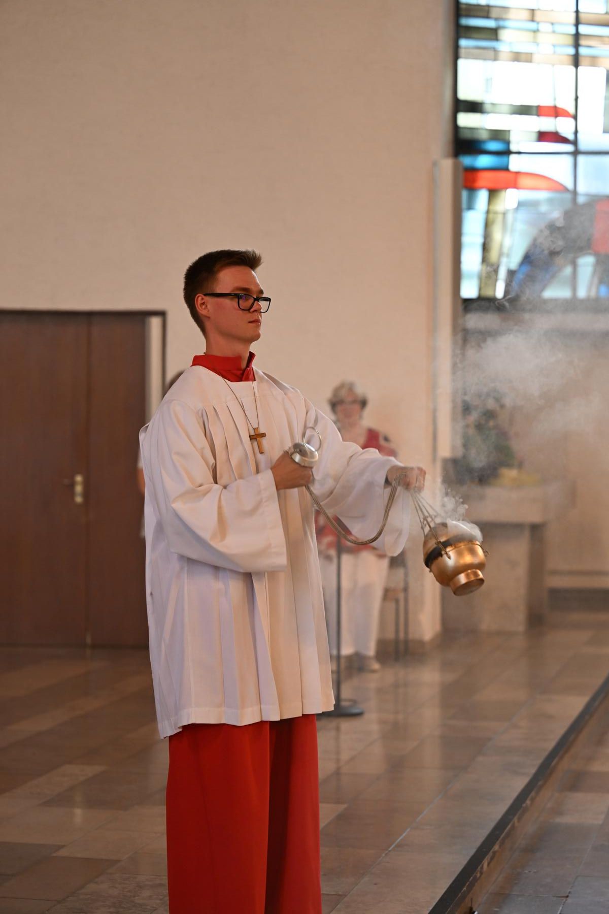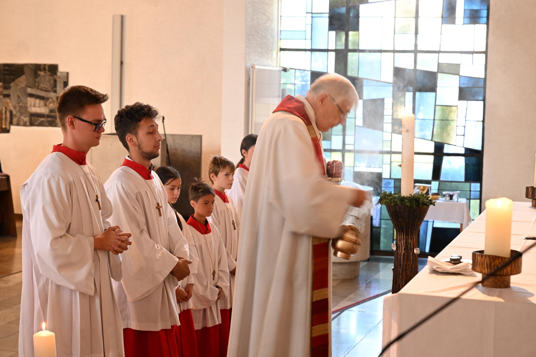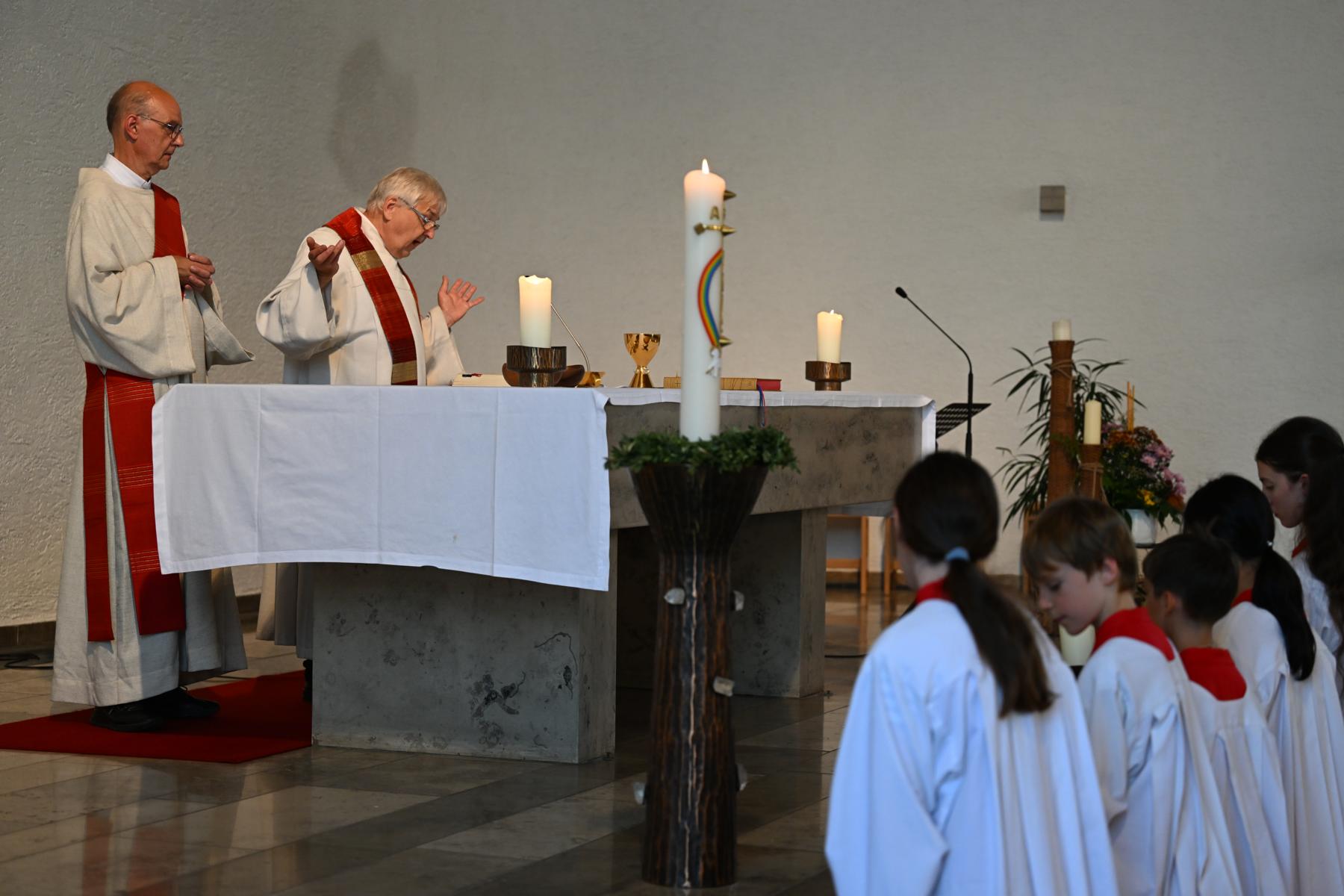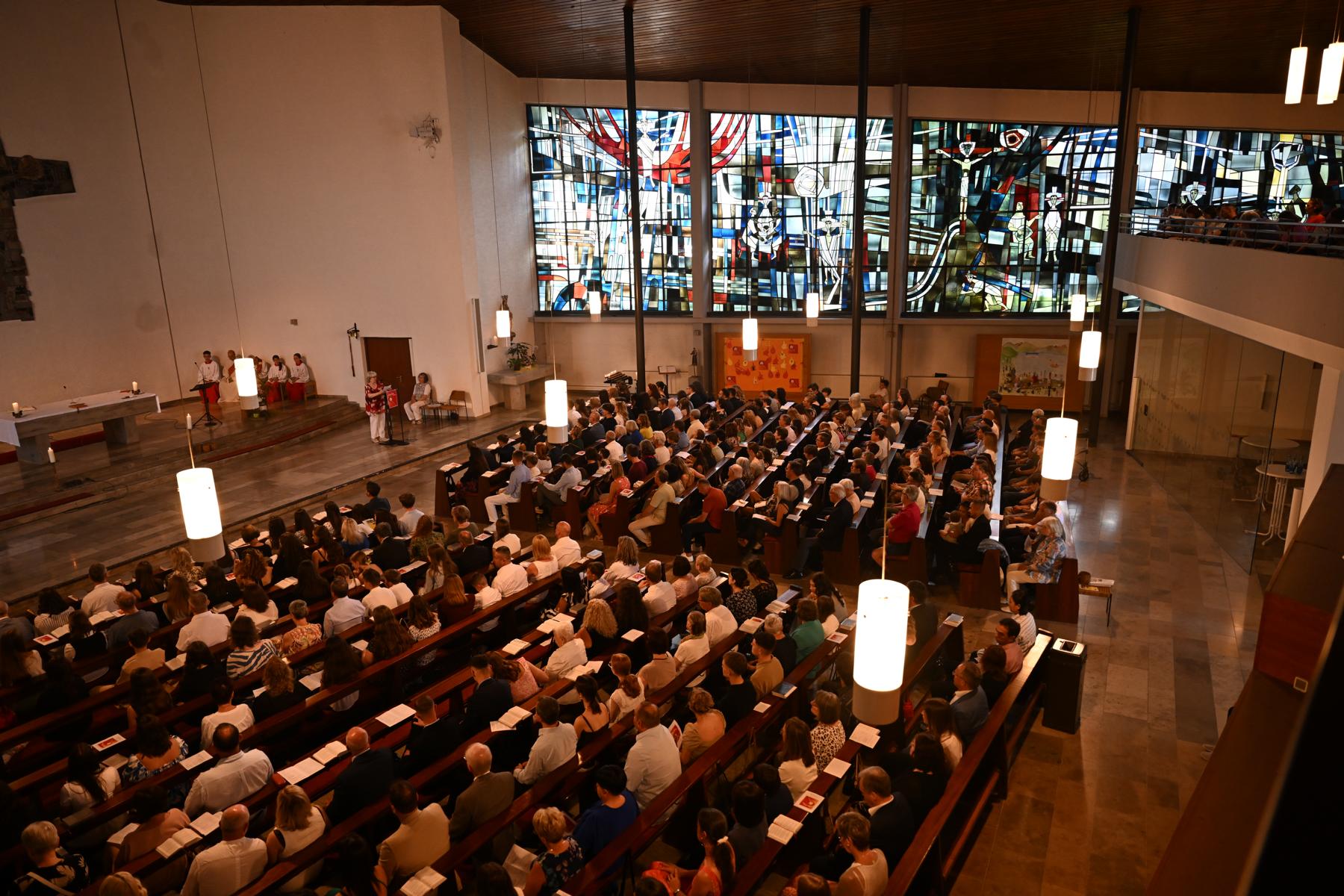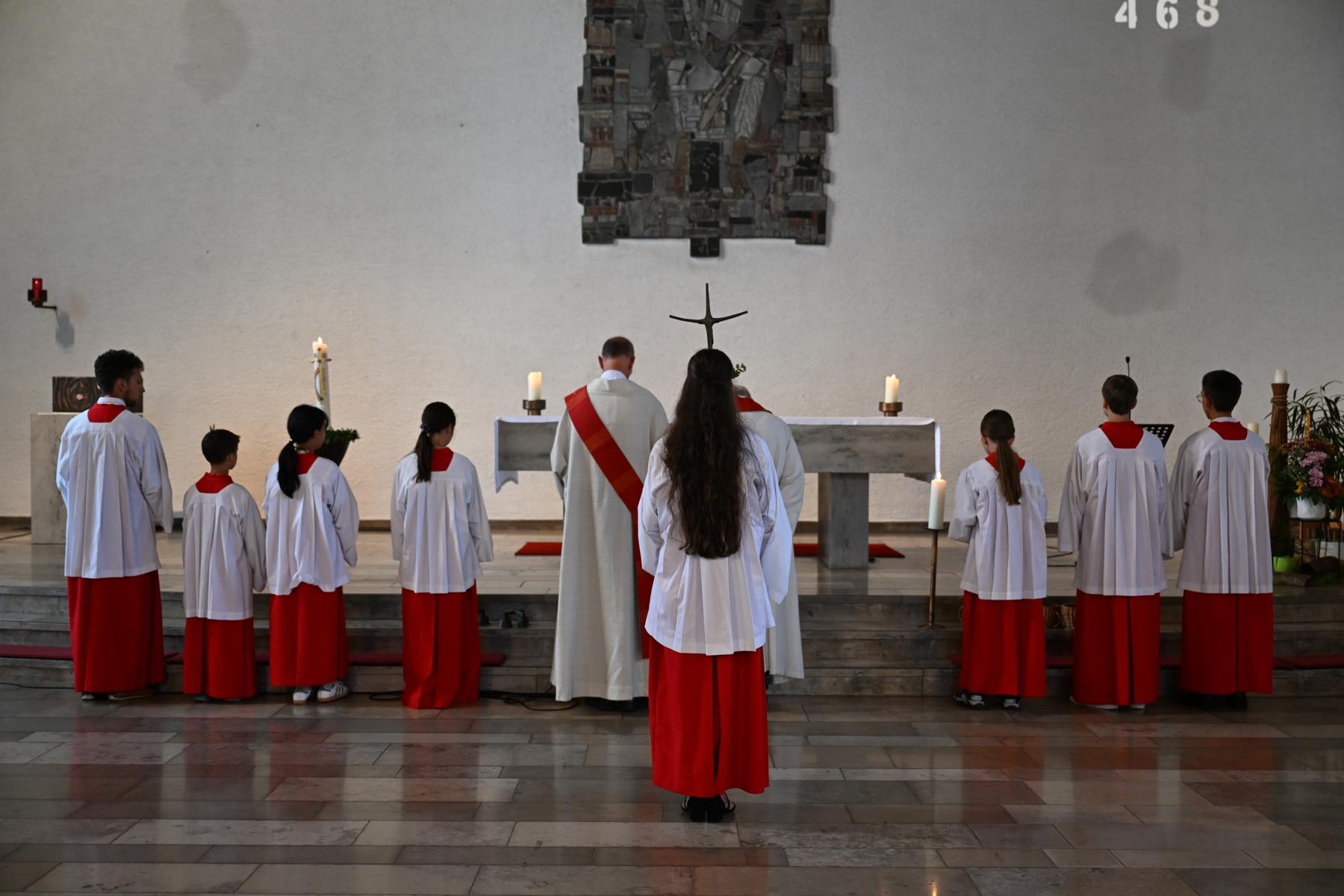 28 Jugendliche wurden in einem festlichen Gottesdienst am 16. Juli 2023 in der Christkönigskirche in Backnang von Pfarrer Wolfgang Beck gefirmt.
