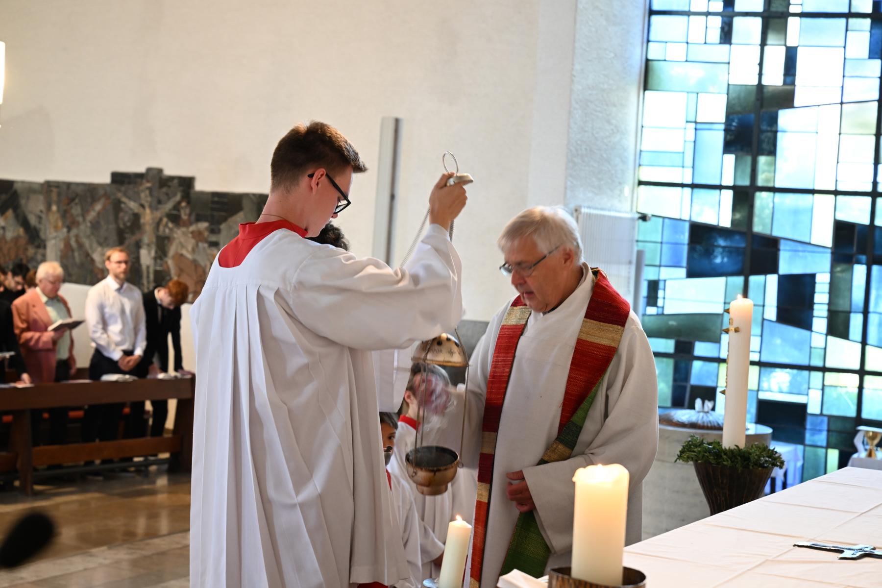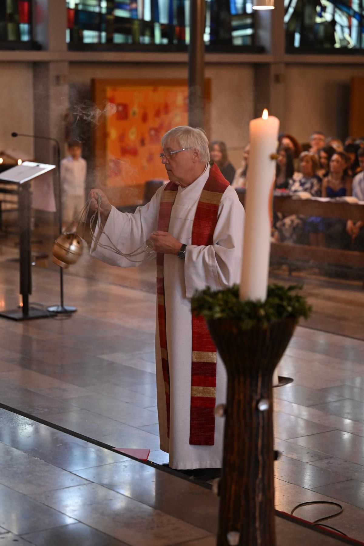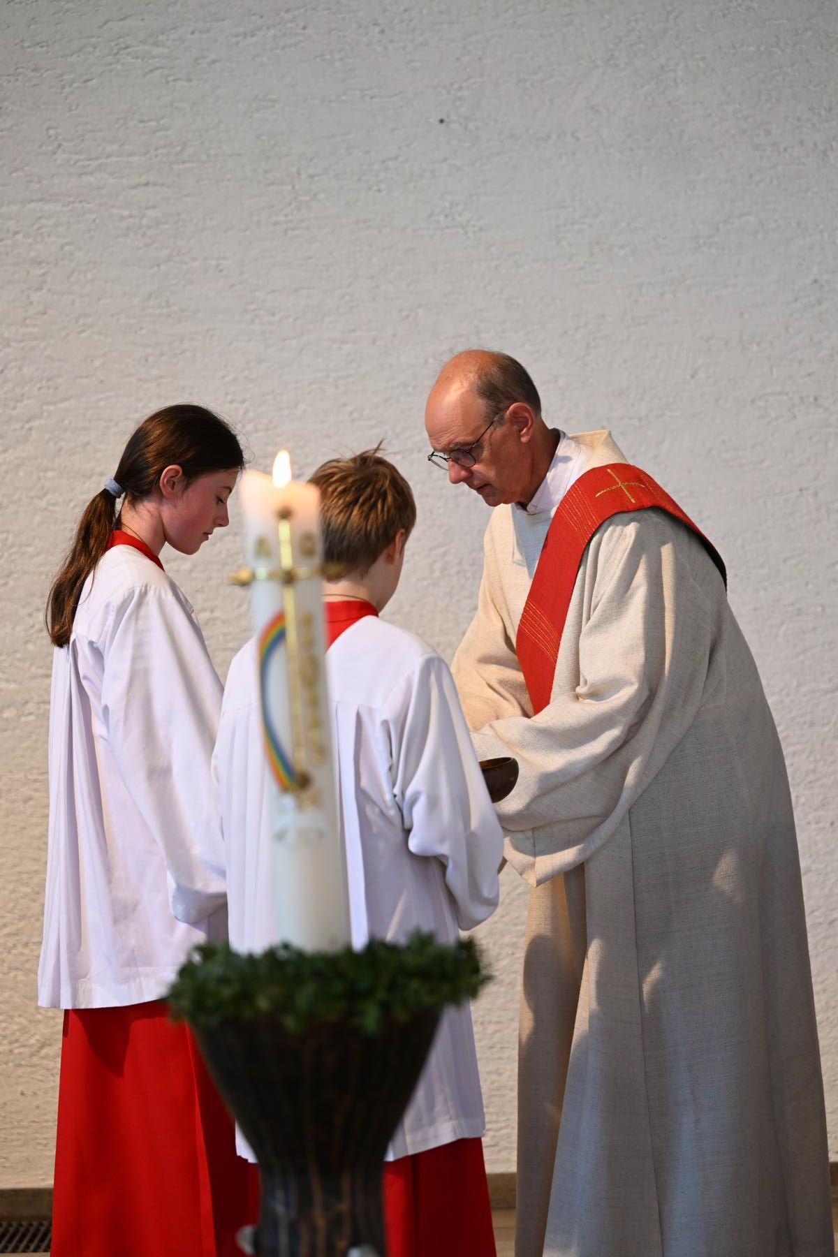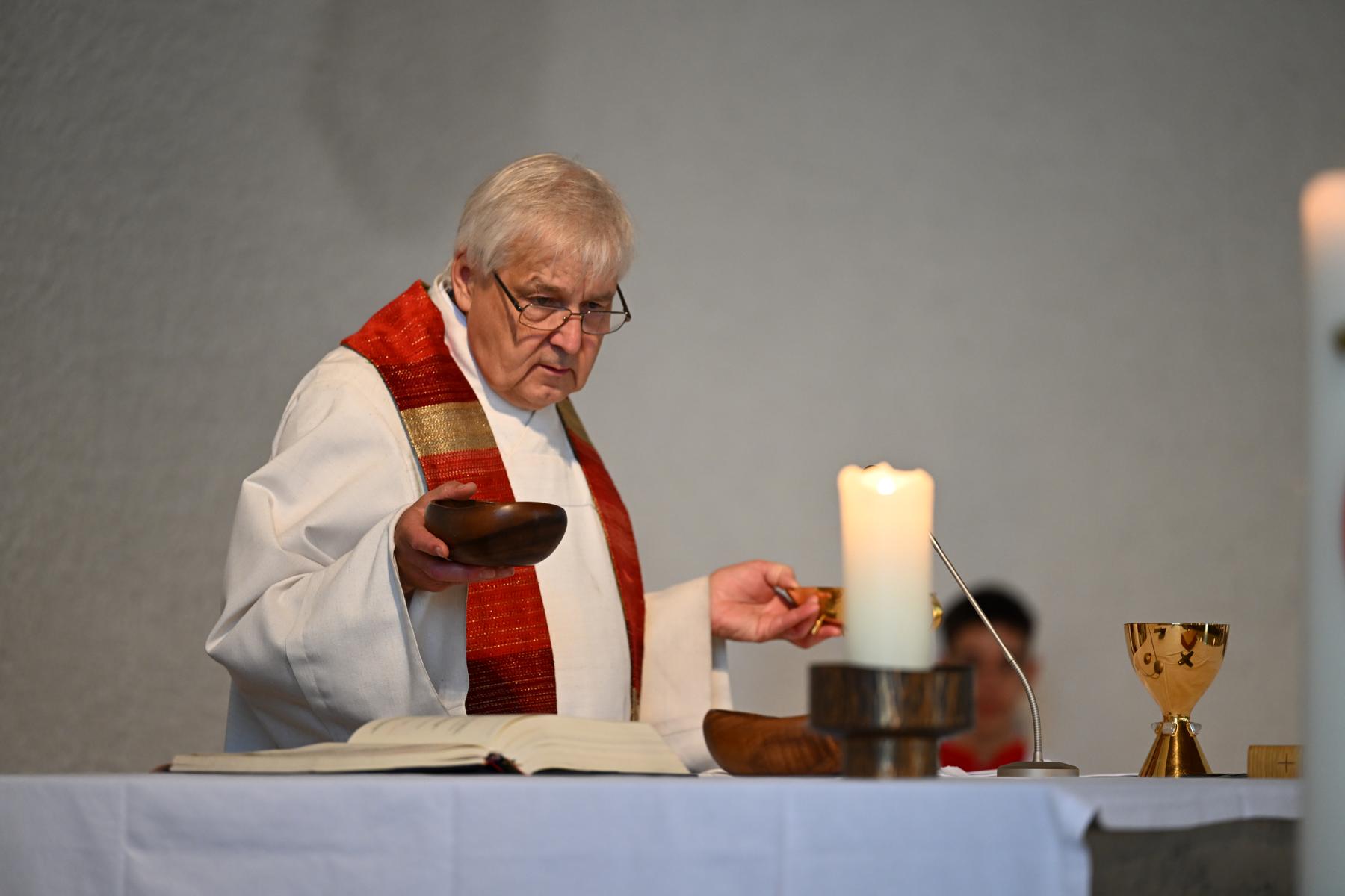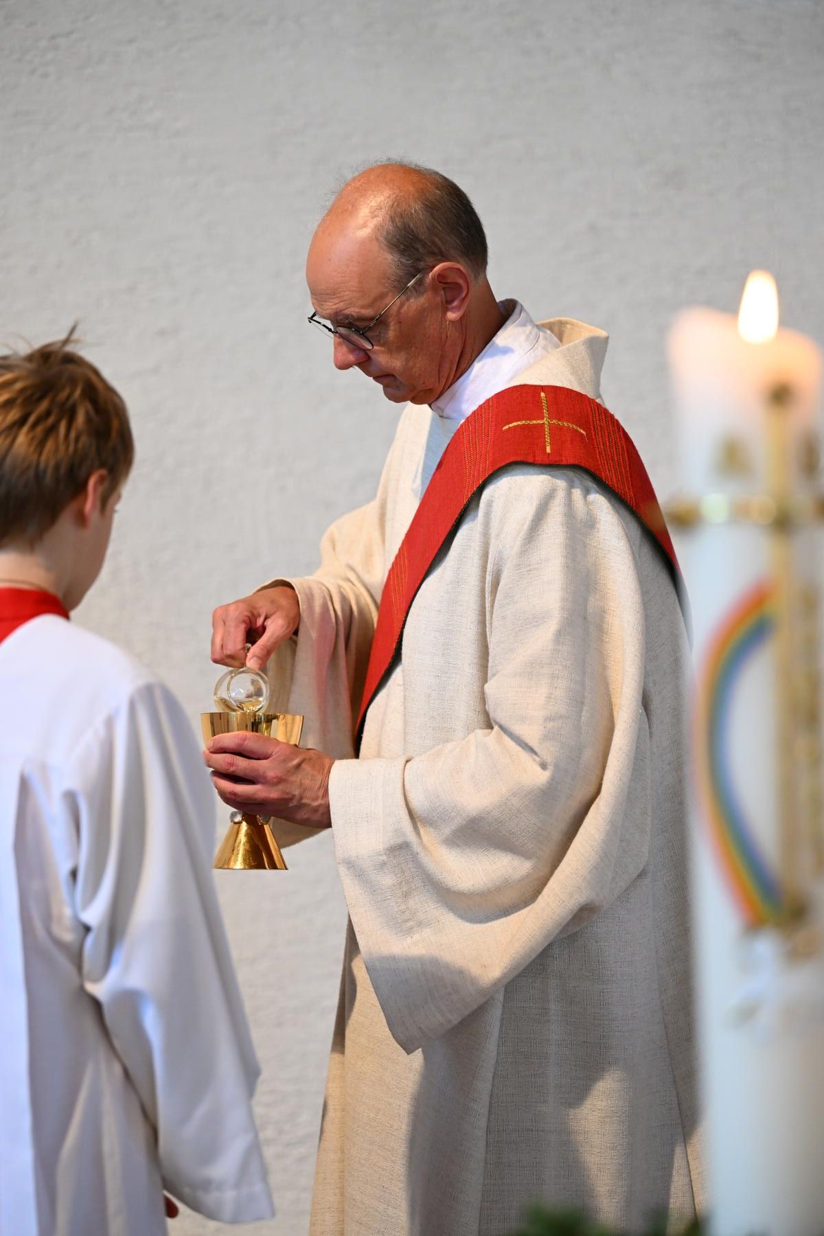 28 Jugendliche wurden in einem festlichen Gottesdienst am 16. Juli 2023 in der Christkönigskirche in Backnang von Pfarrer Wolfgang Beck gefirmt.