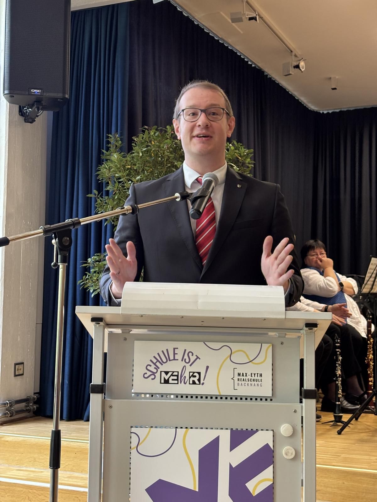 Die Gedenkworte bei der Kranzniederlegung sprach Carsten Wriedt, Diakon der Katholischen Kirche Backnang. Er erinnerte an Albert Schweitzer und seine Leitgedanken „Ich bin Leben, das Leben will – inmitten von Leben, das Leben will“ sowie „Ehrfurcht vor dem Leben“.