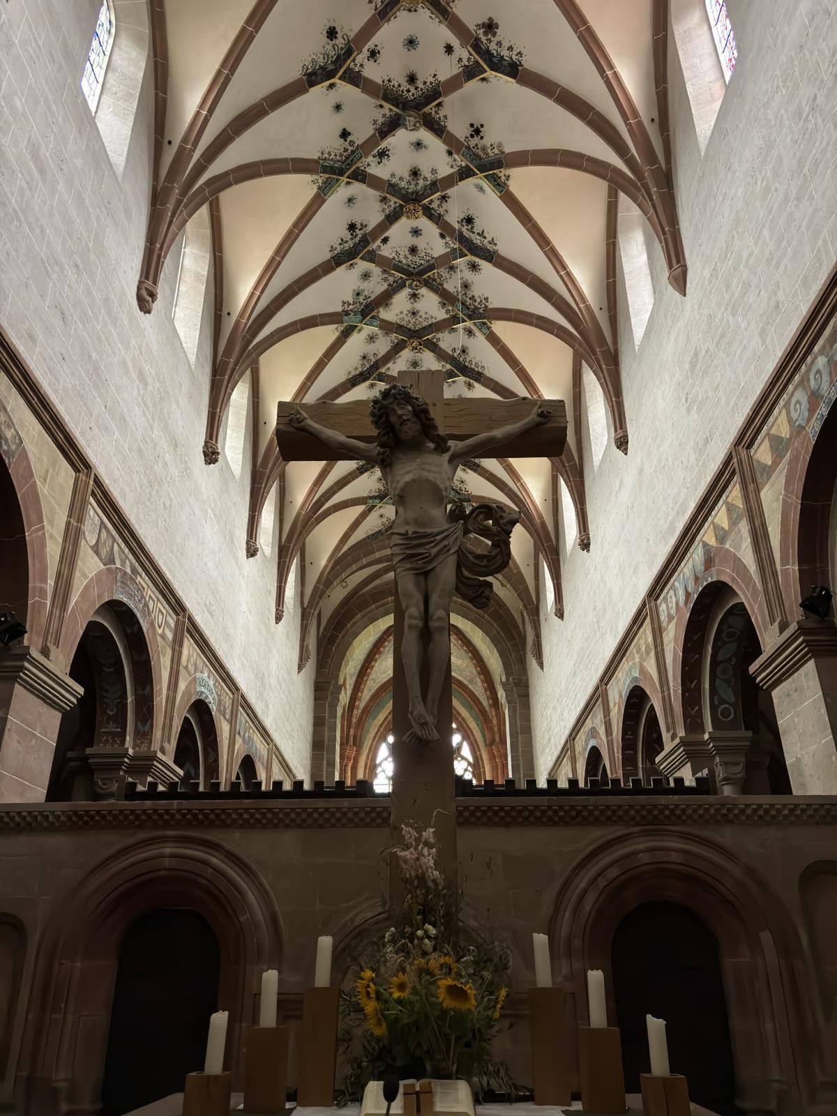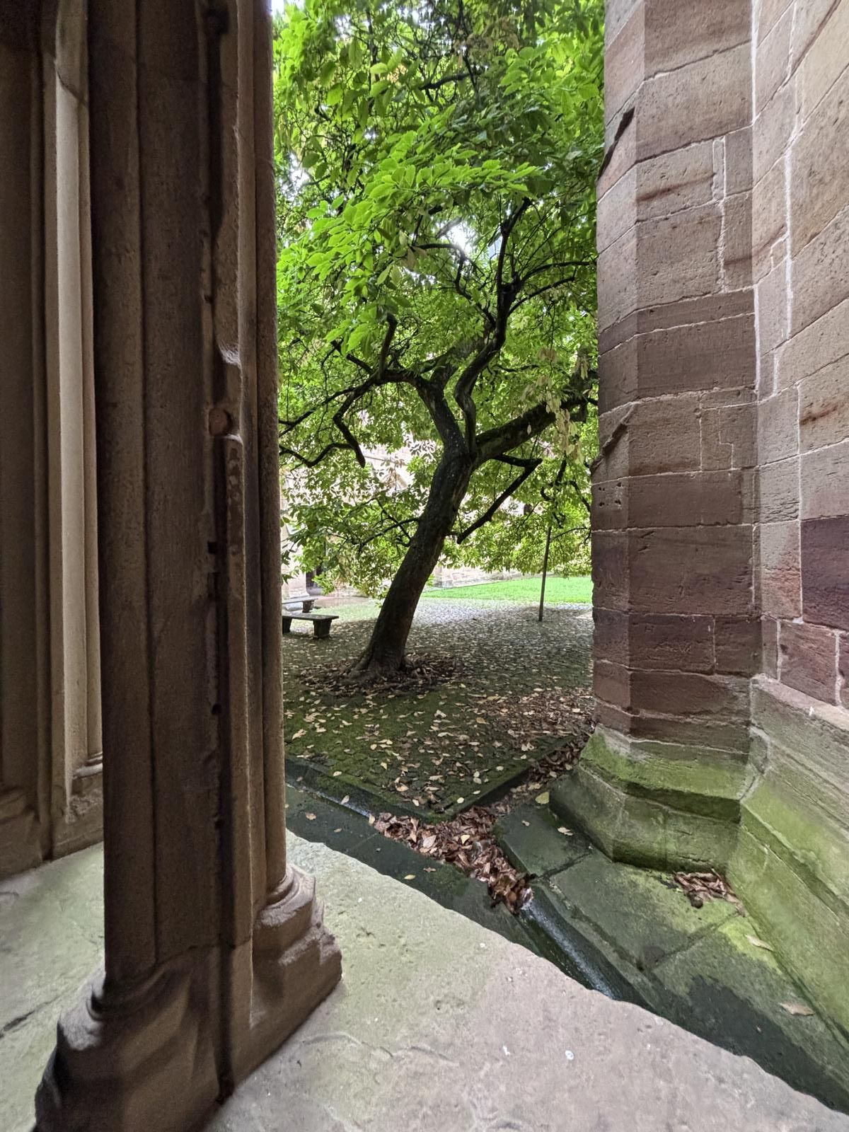 Von nun an ging es bergab zur Burg von Esslingen. Einen „Kaffee to go“ gab es, einen Kreistanz mit Gesang wurde auf dem Burgplatz eingestimmt, bevor es weiterging zur Frauenkirche. Dort legten wir unseren letzten Halt ein, bei Liedern und Psalm sowie einer Stillphase.