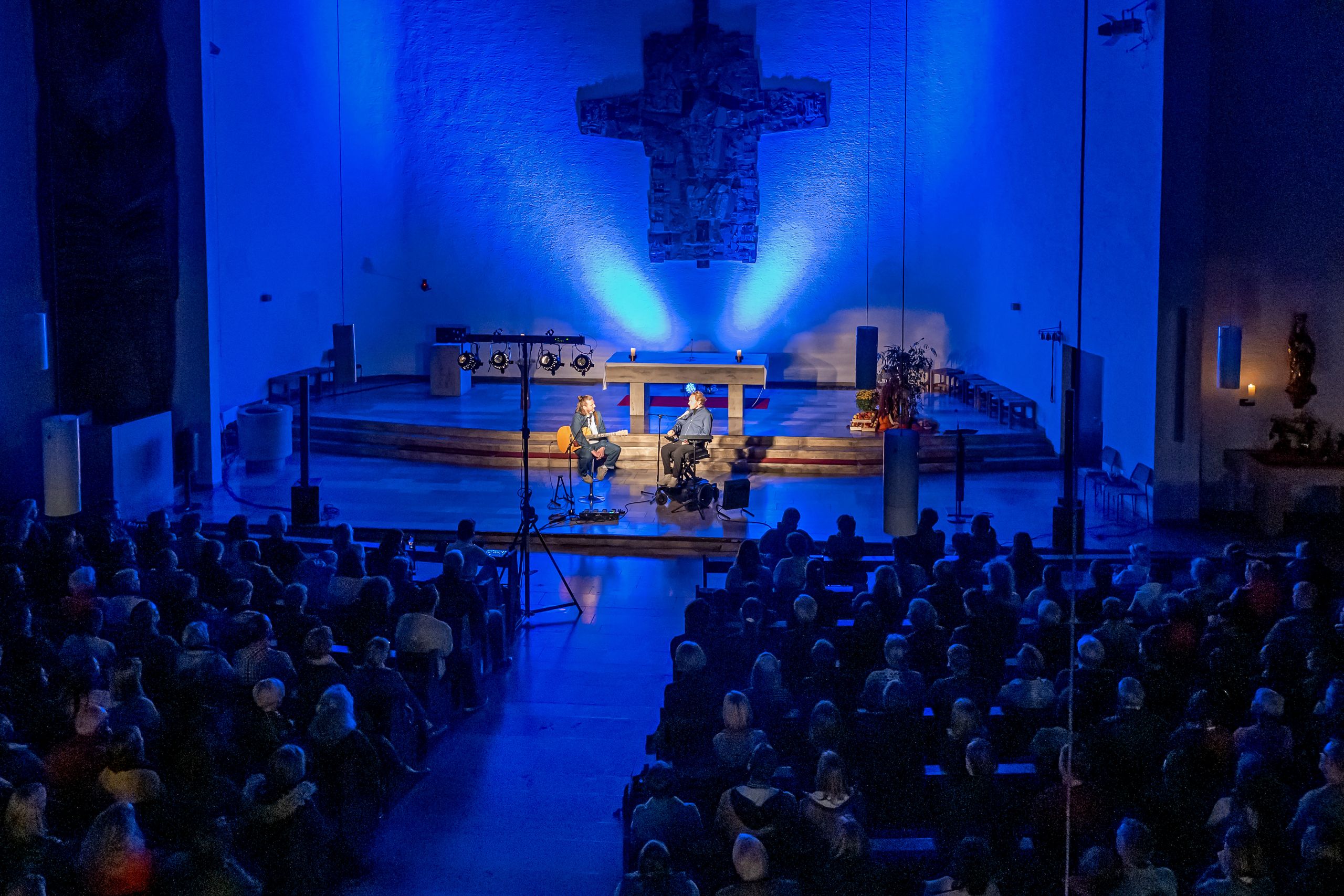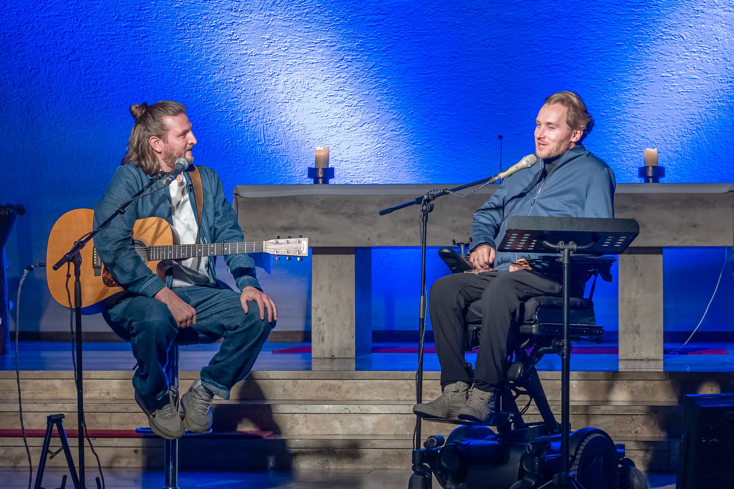 Samuel Koch und Samuel Harfst kamen mit ihrer Konzertlesung zu uns nach Backnang, in die – bis auf den letzten Sitzplatz ausgebuchte – Christkönigkirche!