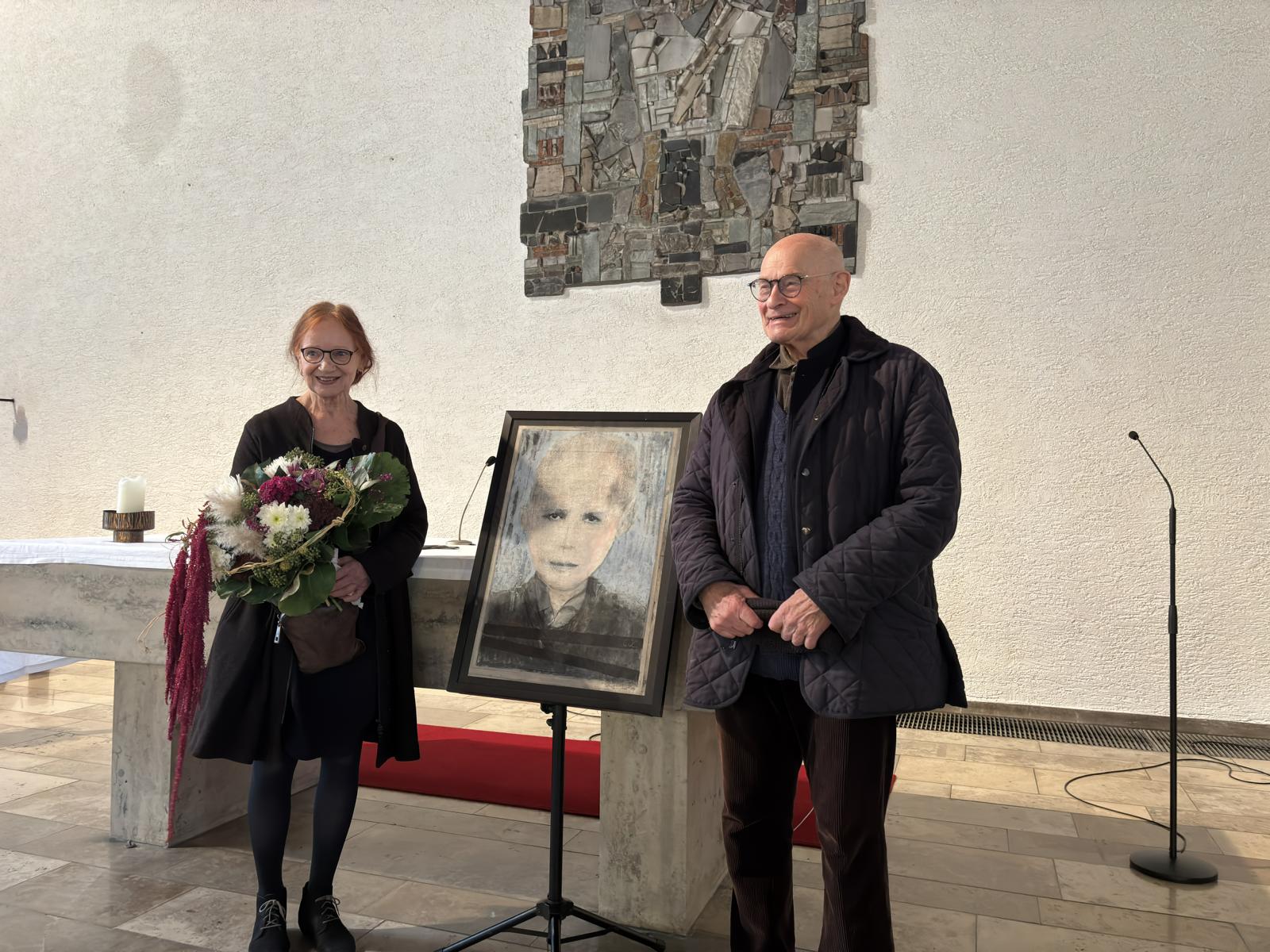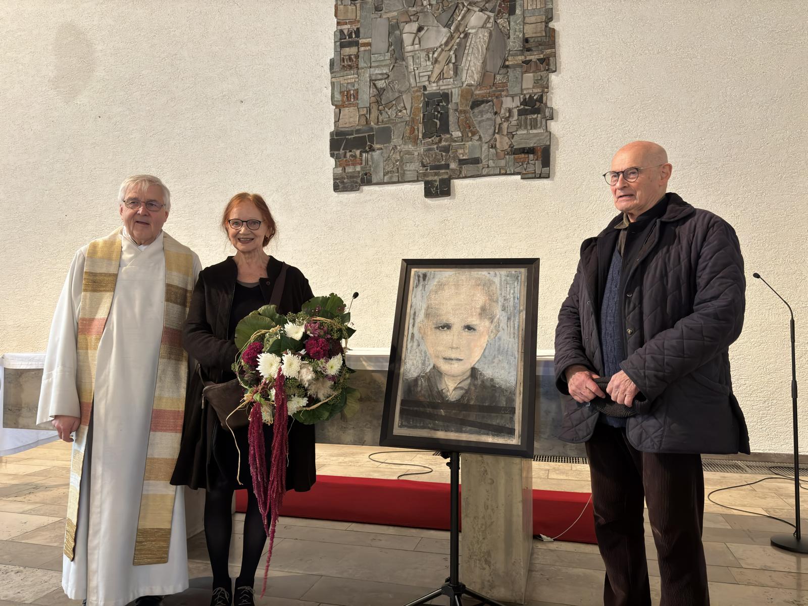 Sein Geburtstag ist der 1.11.1929. Im Kirchturm der Kirche Christkönig ist sein Schriftzug eingraviert und jetzt hat die Gemeinde ein Bild der Künstlerin Mechthild Schöllkopf Horlacher erhalten, um sein Gedenken noch zu vertiefen.
