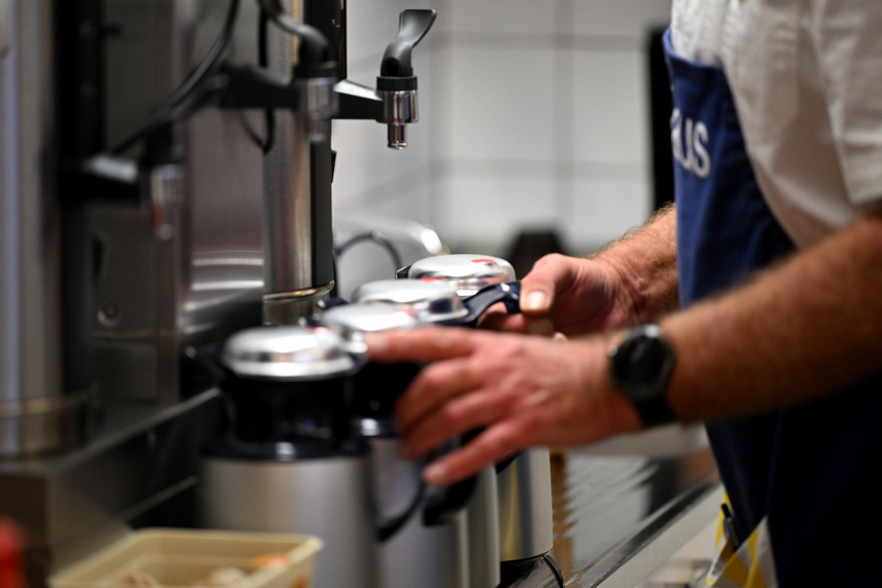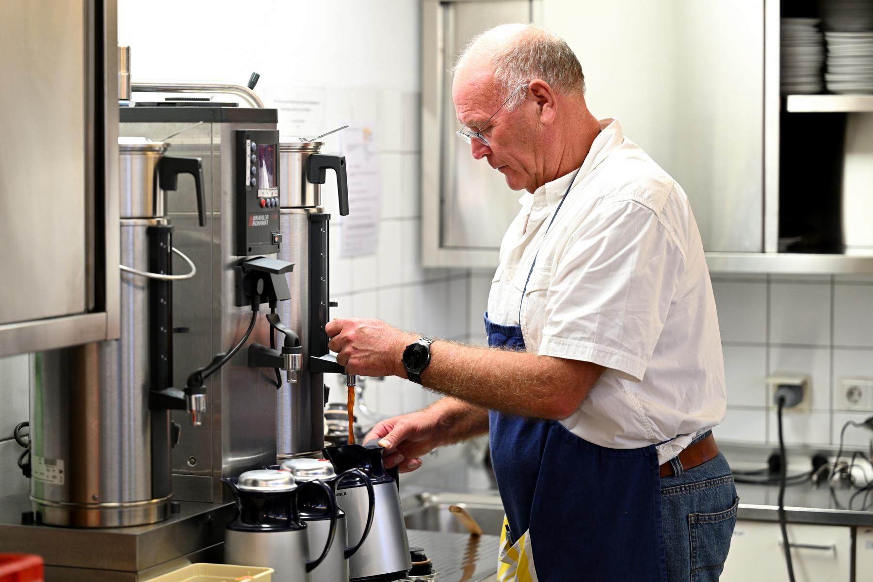 Aber es ist auch ein Mammutprojekt für den derzeitigen Leiter der Vesperkirche, Klaus – Dieter Sachon. Er plant den Einsatz aller helfenden Hände und langt auch selbst kräftig hin, damit das Essen die freudig hungrigen Menschen erreicht.