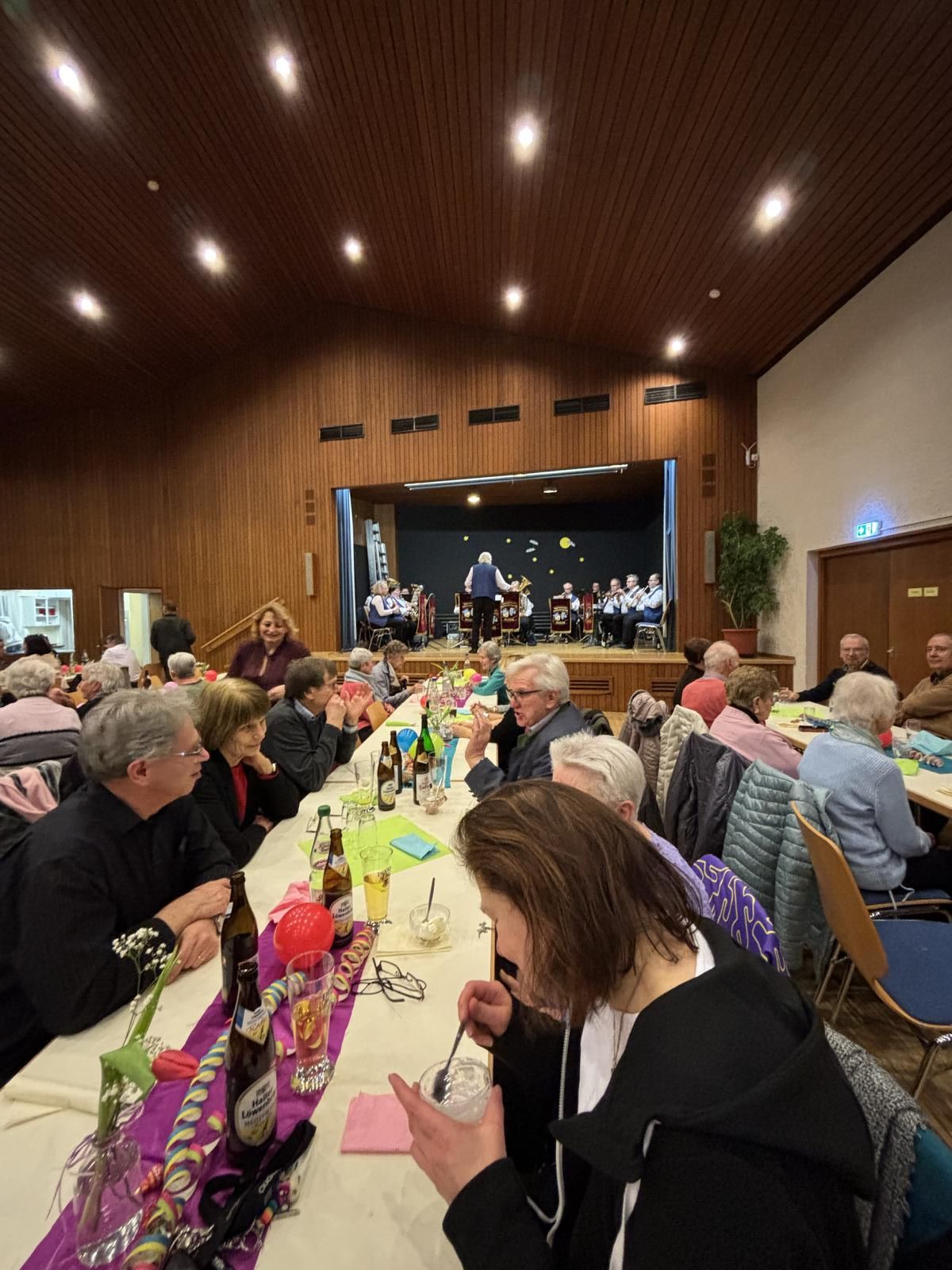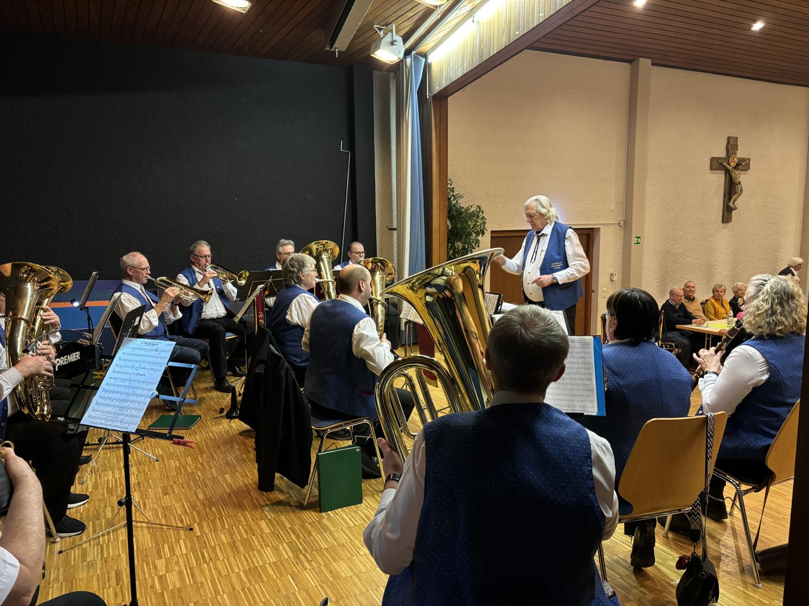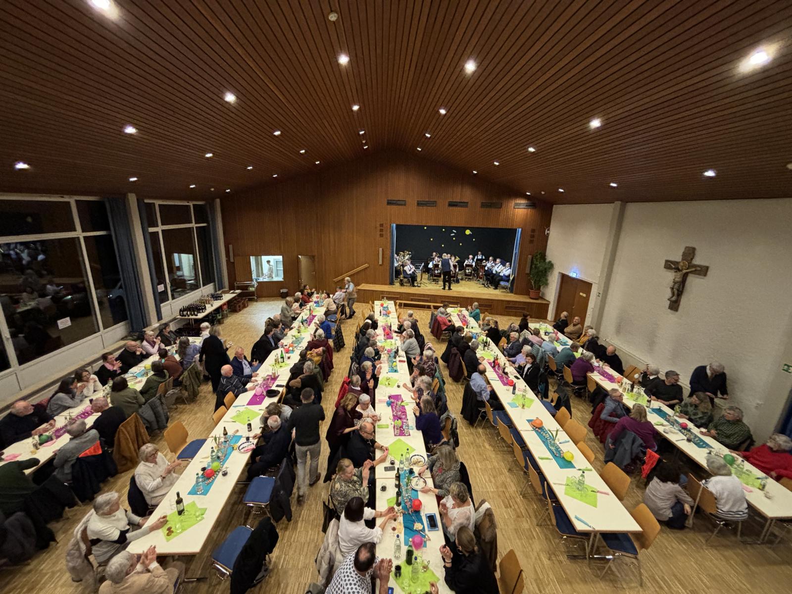 Nach der Eucharistiefeier in der Kirche Christkönig ging es zum Essen und Begegnen in den Gemeindesaal. Dort spielte die „Ungarndeutsche Heimatblaskapelle“ auf und versetzte den ganzen Saal in Begeisterung mit Schunkeln und Tanzen, manch bekanntes Stück wurde aus voller Kehle mitgesungen.