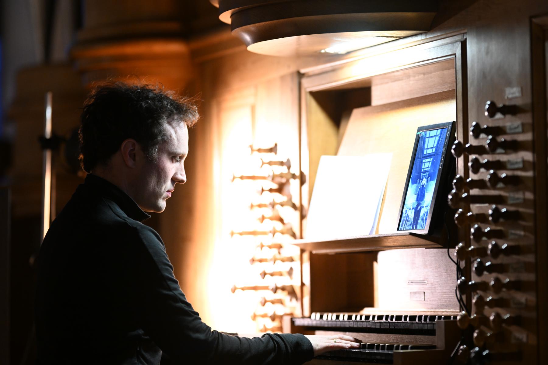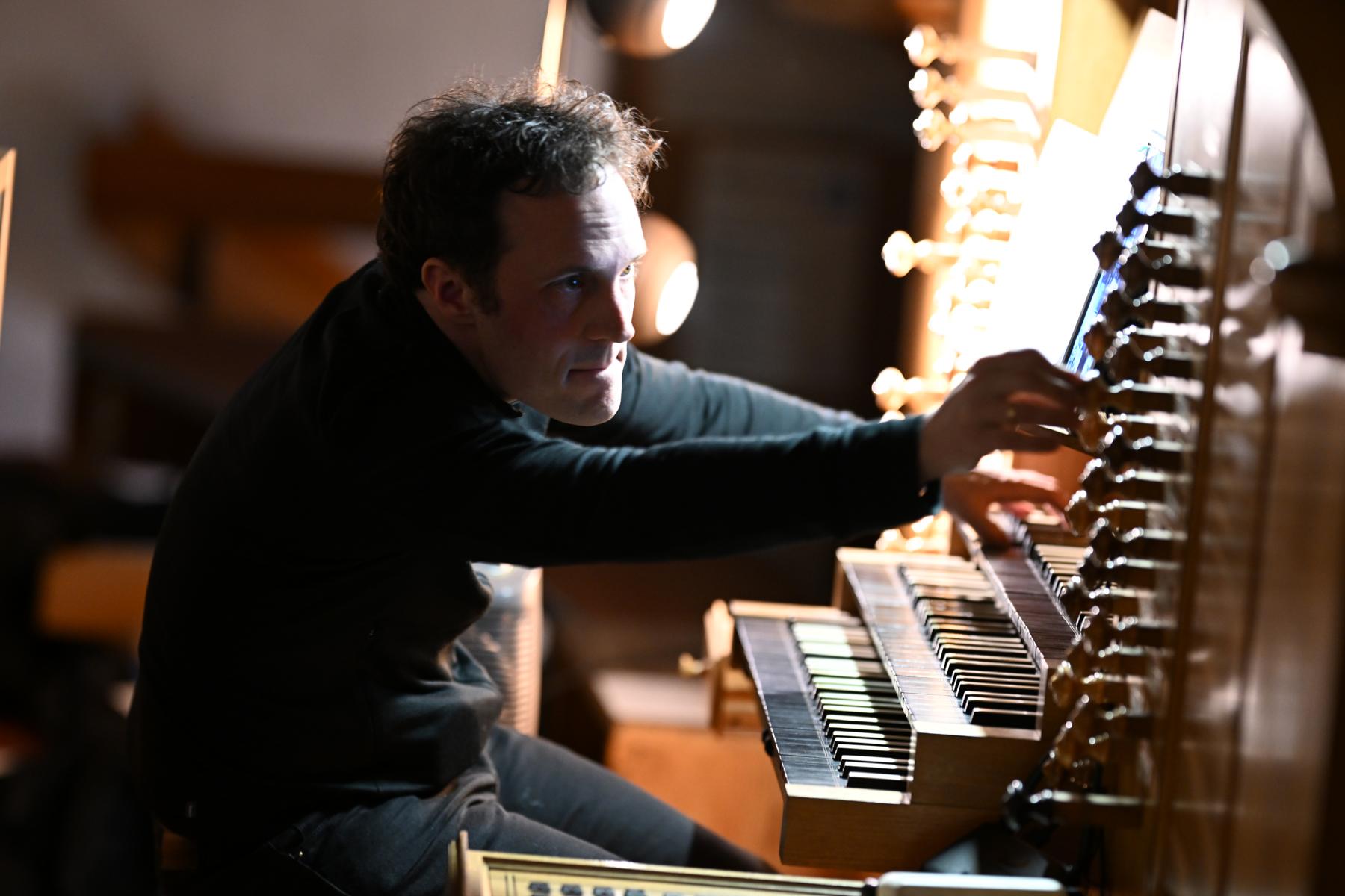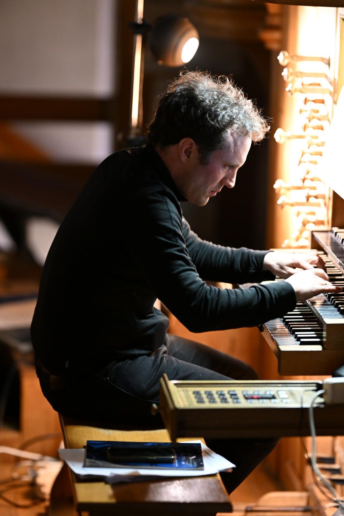 Dazwischen schafft Peter Schleicher durch Improvisationen an der Orgel verbindende Übergänge zwischen den Stücken.