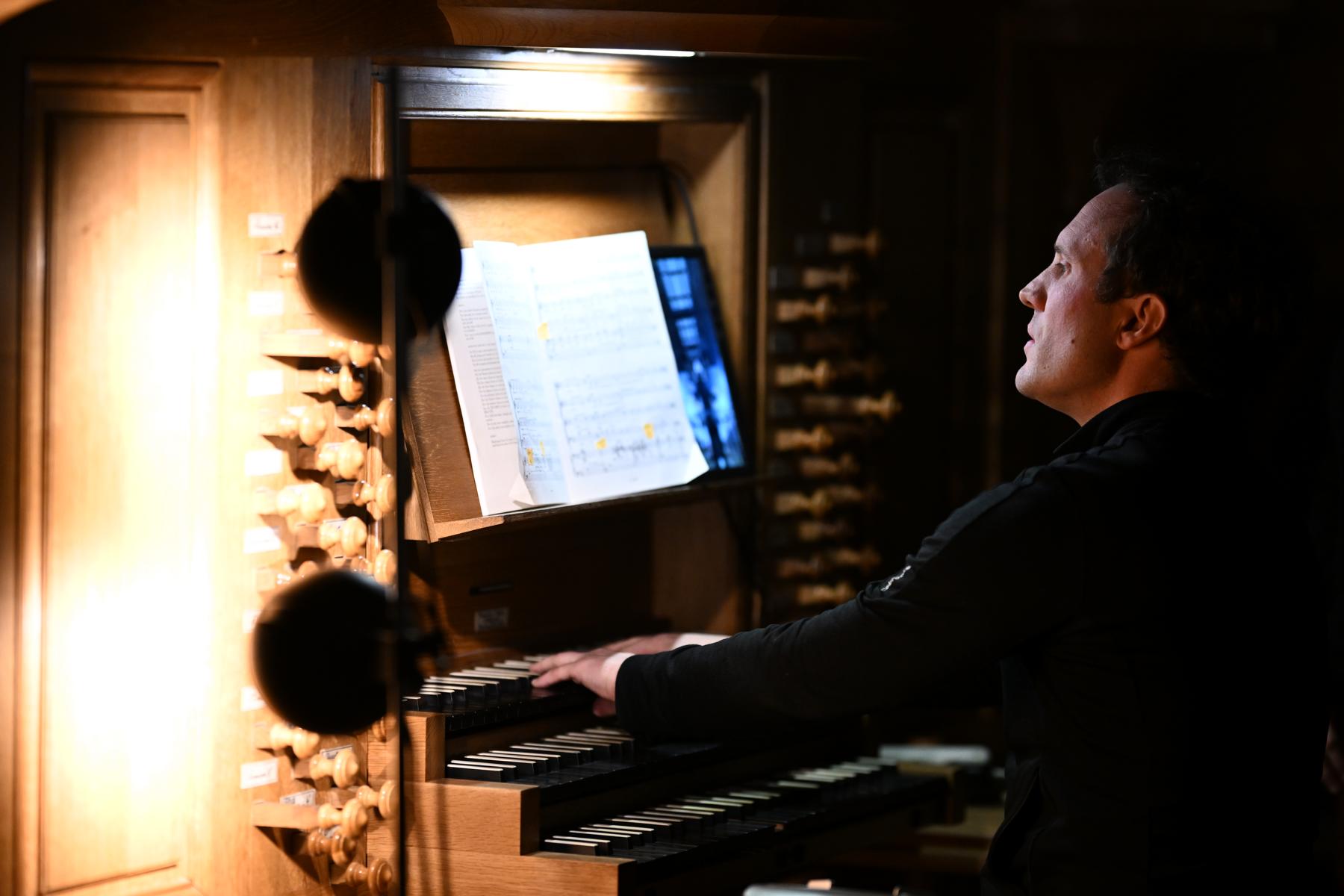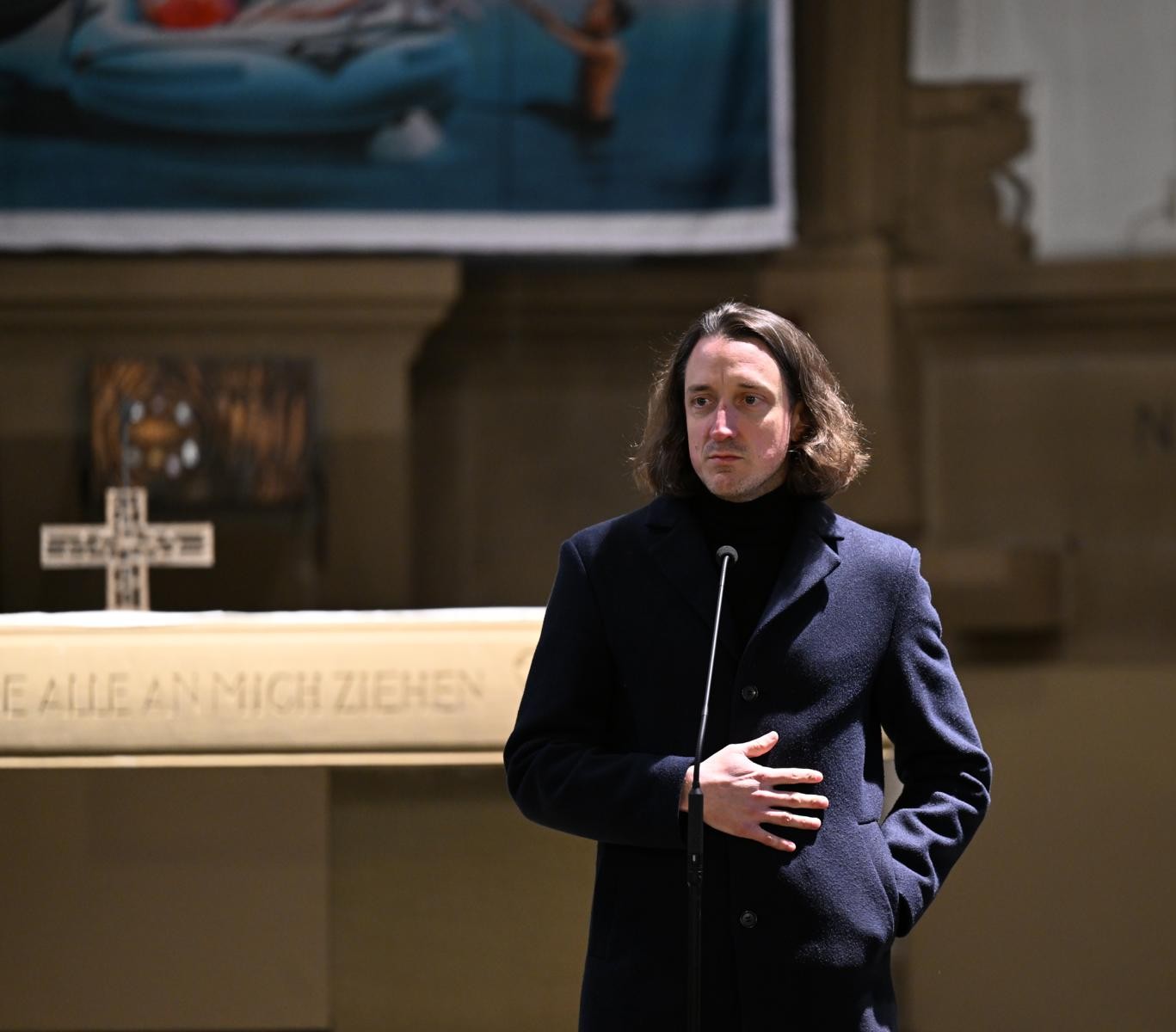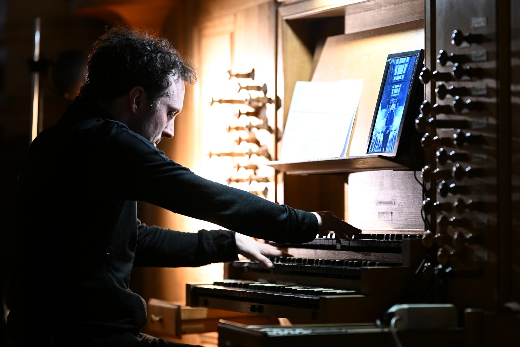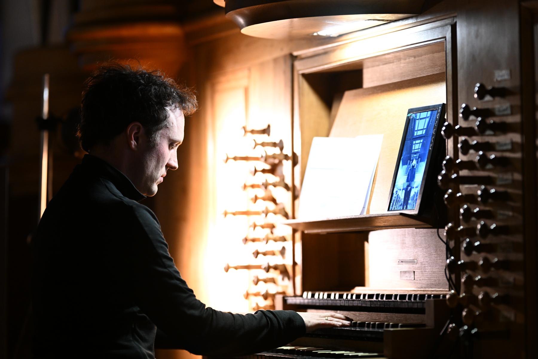 Dazwischen schafft Peter Schleicher durch Improvisationen an der Orgel verbindende Übergänge zwischen den Stücken.