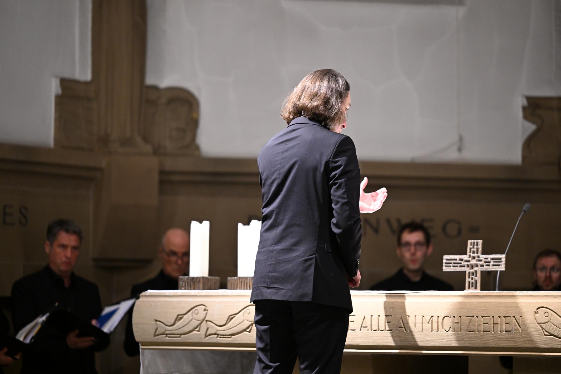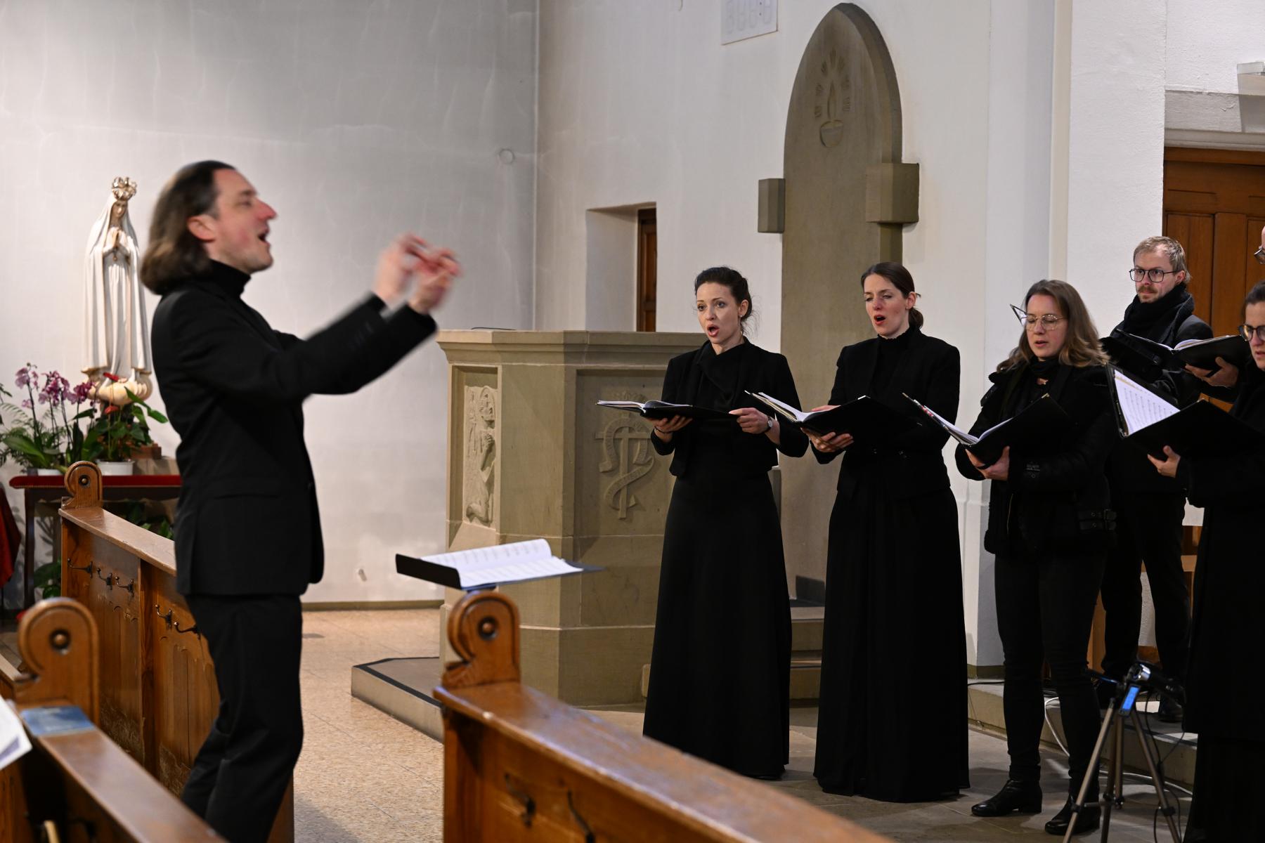 Das erste Konzert des Jahres in der Reihe der Kirchenkonzerte der beiden katholischen Kirchen in Backnang fand am Sonntag, den 21. Januar 2024 um 17 Uhr in der Christkönigskirche statt. Gestaltet wurde es vom Waiblinger Vocalensemble unter der Leitung seines Dirigenten Sebastian Herrmann. Unter der Überschrift „Leben, lernen, sterben“ nahm der Chor das Publikum mit auf einen musikalischen Weg des Leben- und Sterbenlernens. Musik von Orlando di Lasso, Johann Hermann Schein, Gustav Schreck, Anton Bruckner und Ko Matsushita markiert die Stationen dieses Weges.
