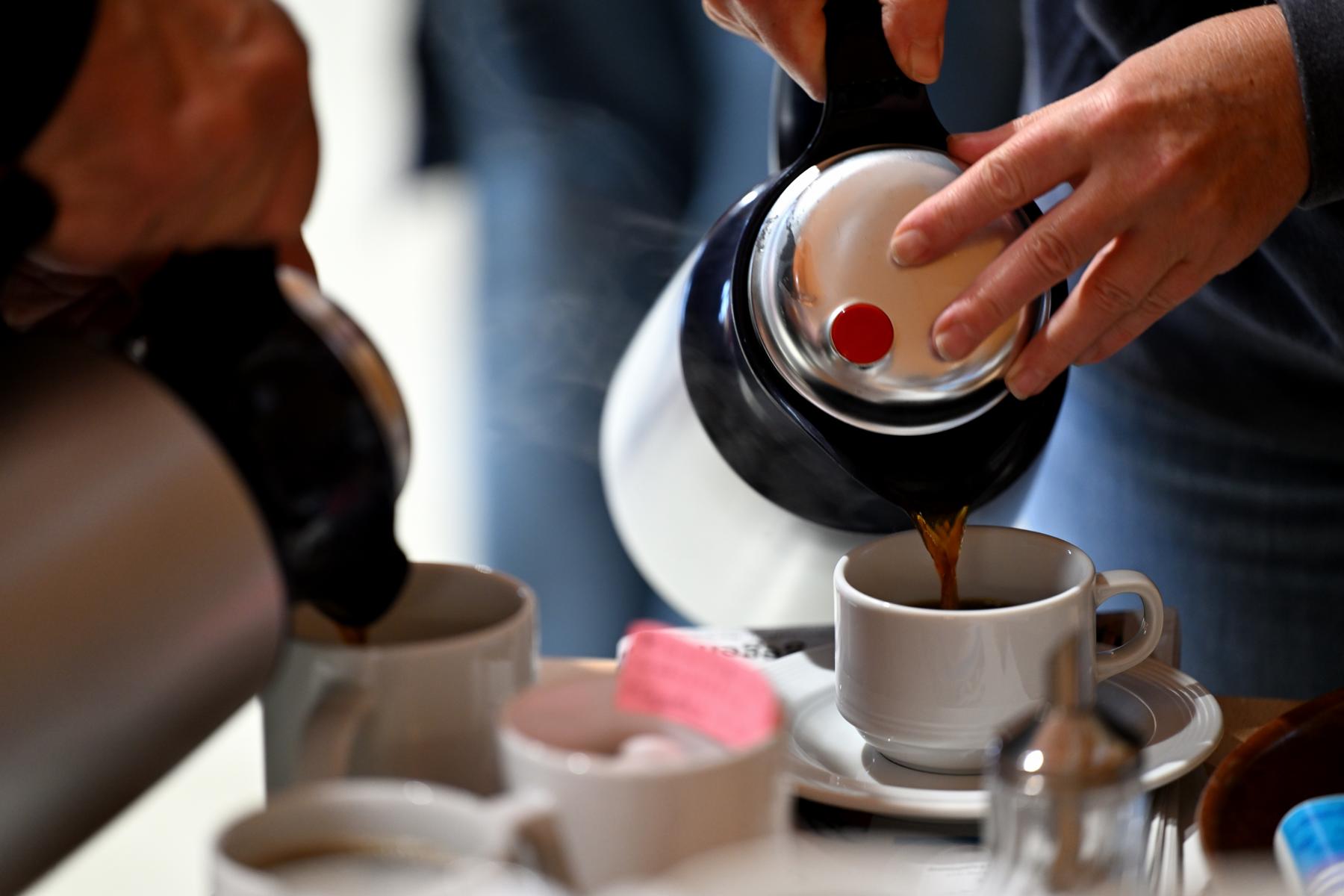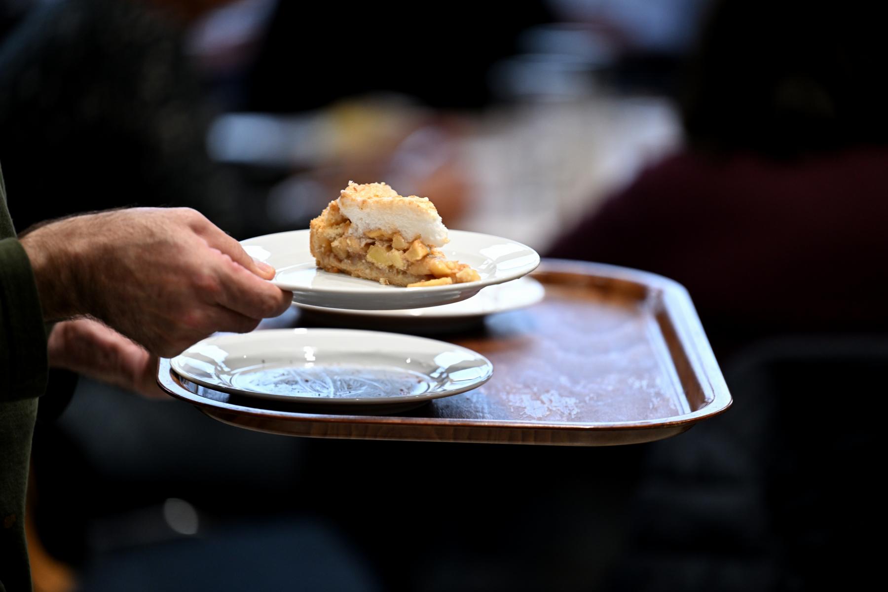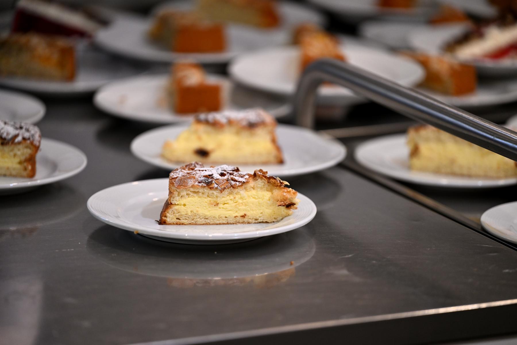 Ehrenamtliche Kochteams bereiten mit frischen Zutaten ein schmackhaftes Essen zu. Der Kuchen wird von fleißigen Kuchenbäckerinnen gespendet.